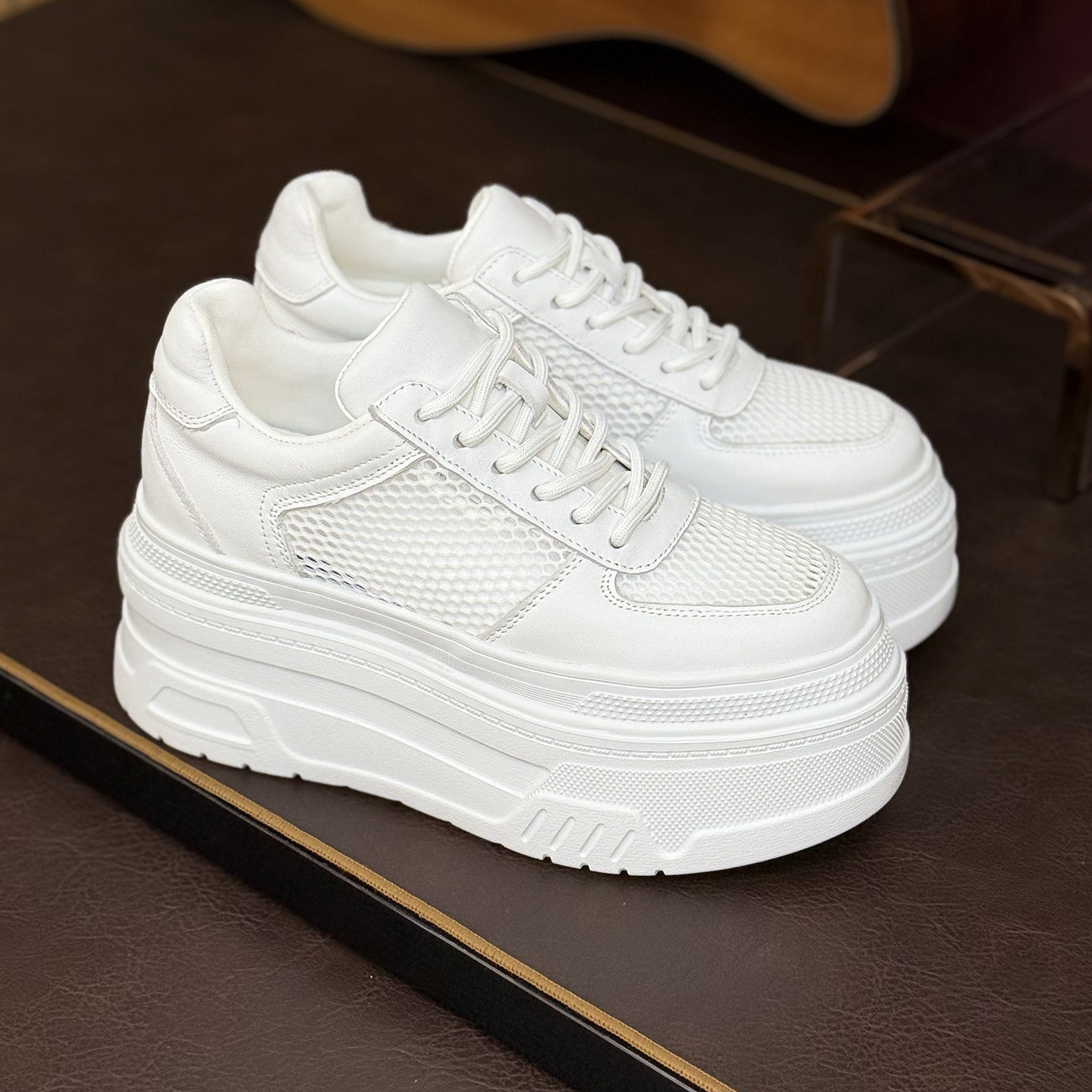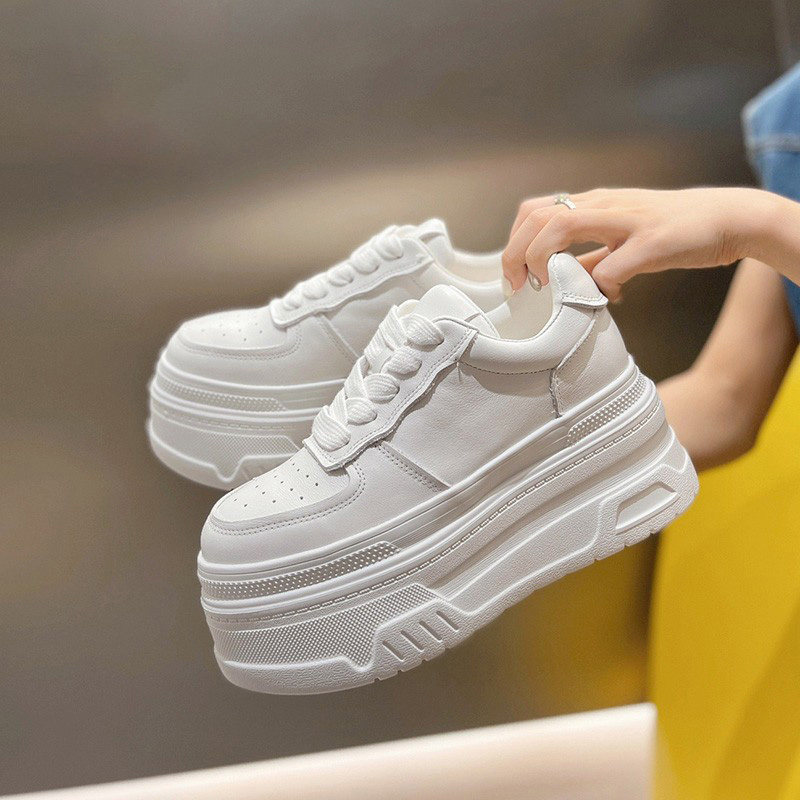真皮女款8-10公分内增高小个子2026新款百搭显脚小厚底松糕小白鞋