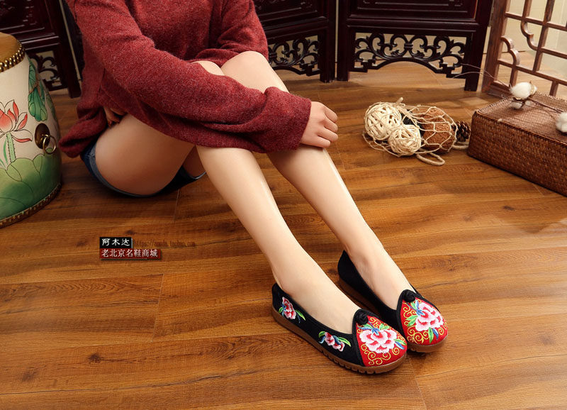 老北京软底布鞋民族风绣花鞋子复古女鞋单鞋平底刺绣中式妈妈女鞋