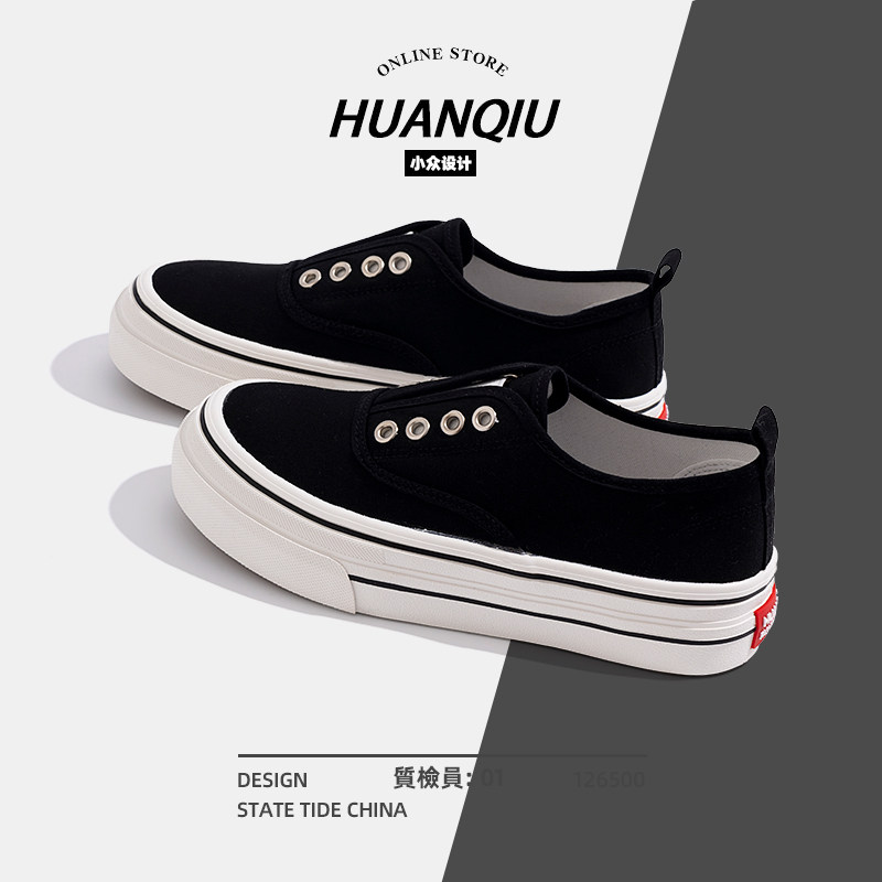 环球厚底一脚蹬帆布鞋女2024新款夏季薄款女鞋松紧百搭透气休闲鞋