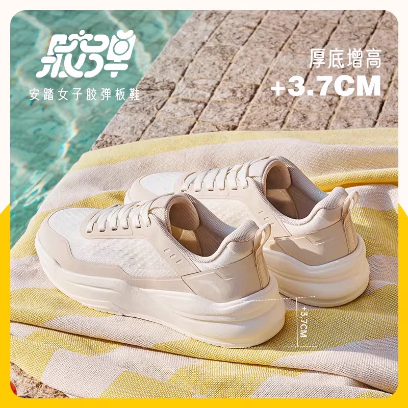 安踏板鞋女款冰淇淋厚底增高休闲鞋女生2026春季鞋子ins风面包鞋