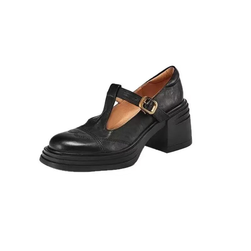 2026新款春季水洗皮 巨舒服~软皮单鞋粗跟厚底玛丽珍鞋法式高跟鞋
