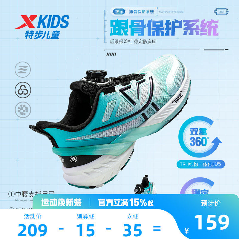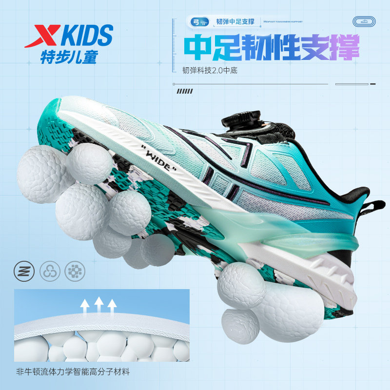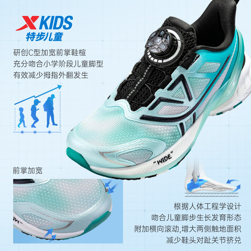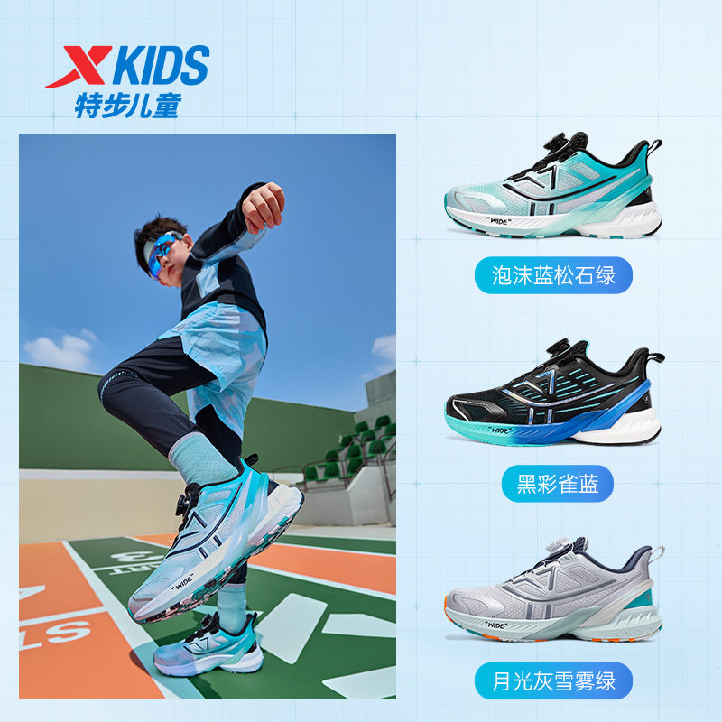 特步儿童旋转纽扣男童跑步鞋网面透气中大童运动鞋A+健康成长鞋