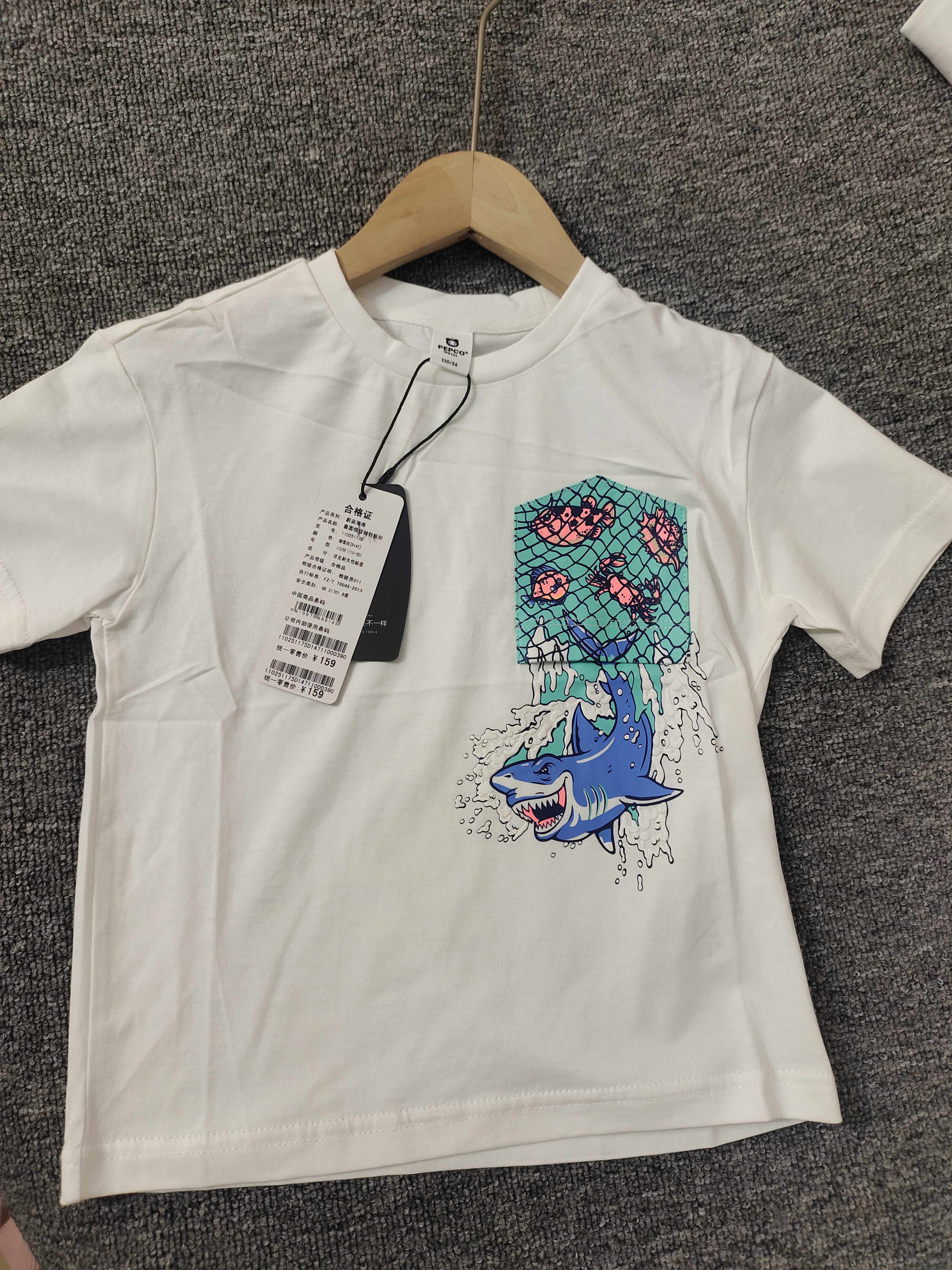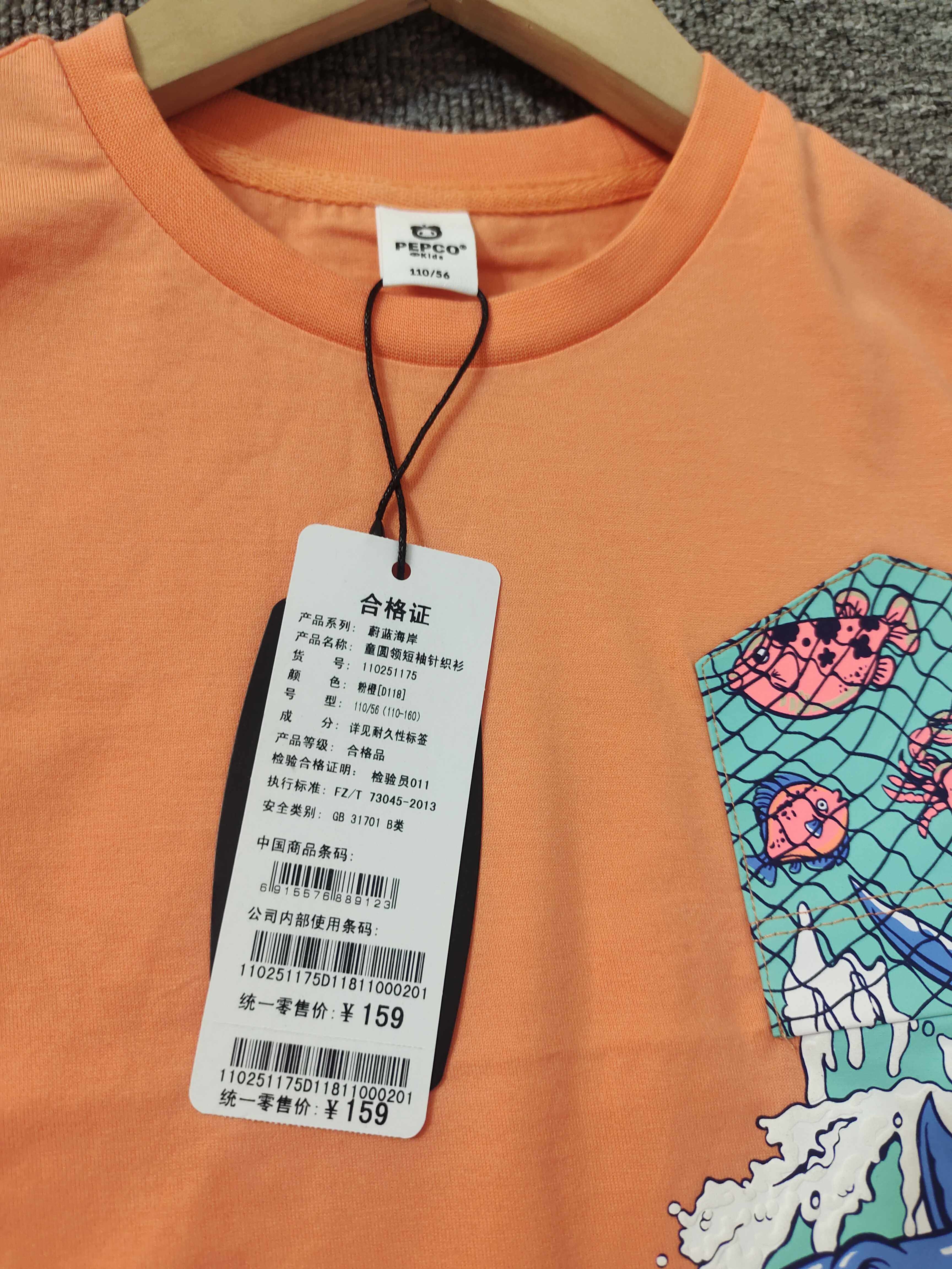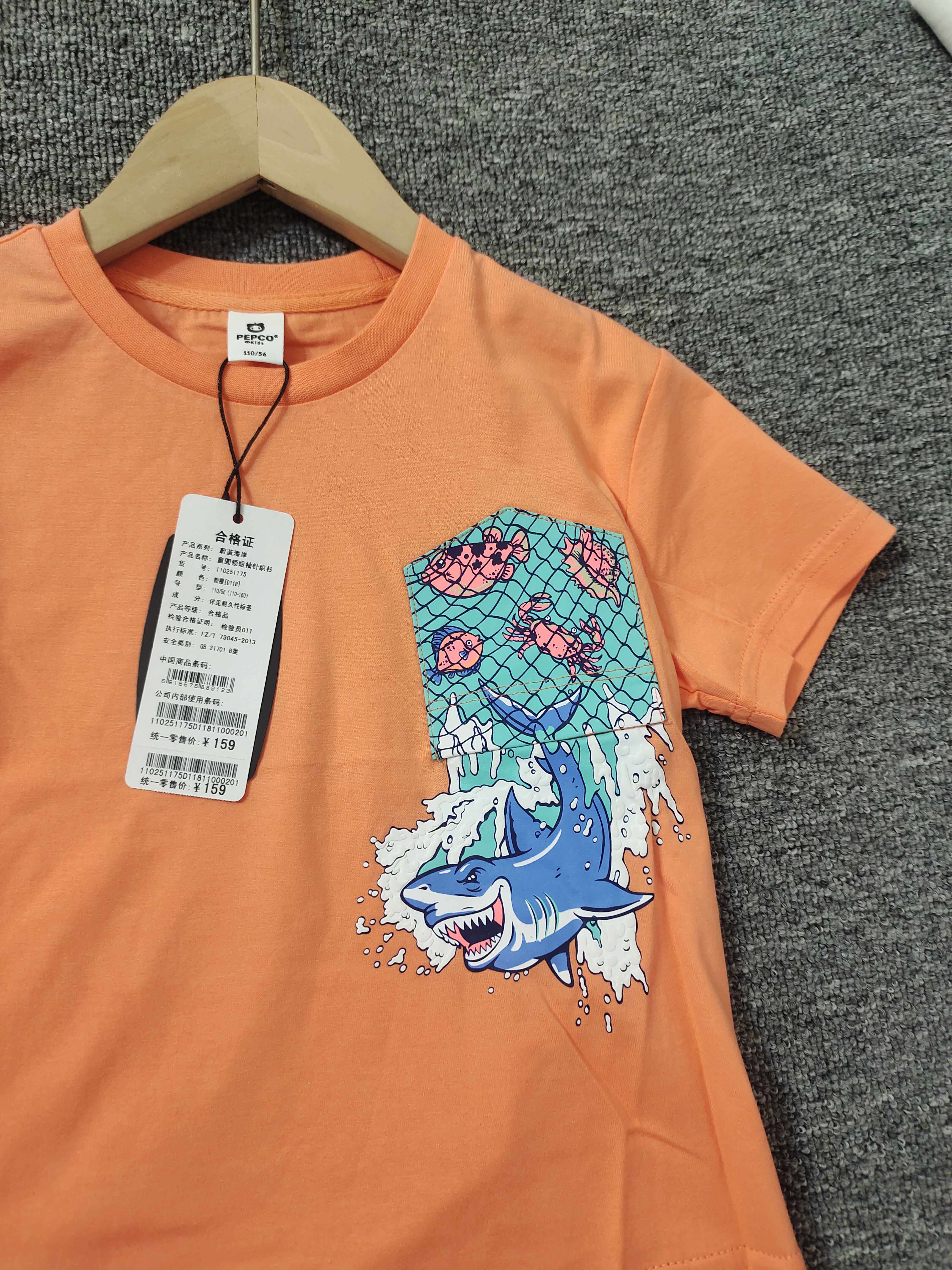 全新小猪班纳夏装儿童男童柔软舒适橙色白色纯棉短袖针织T恤110码