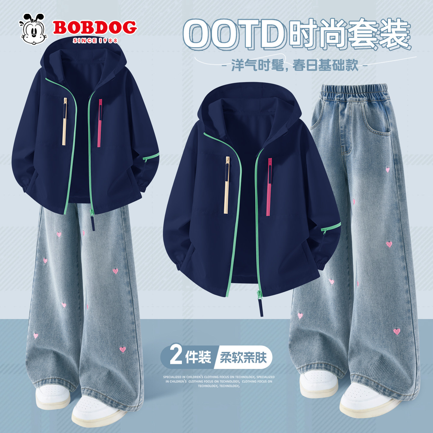 巴布豆童装女童春装套装2026新款中大童女装春秋牛仔裤儿童外套女