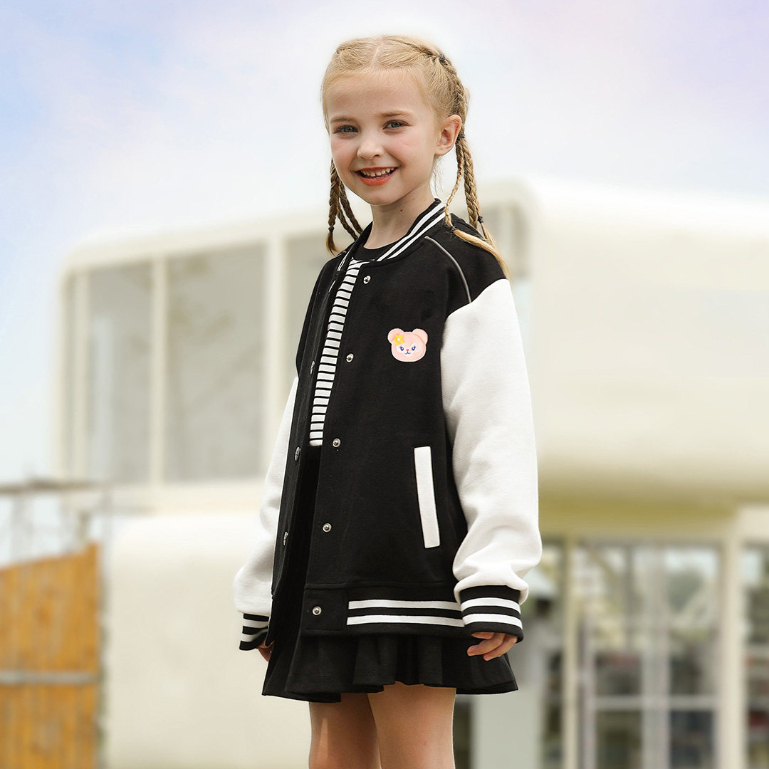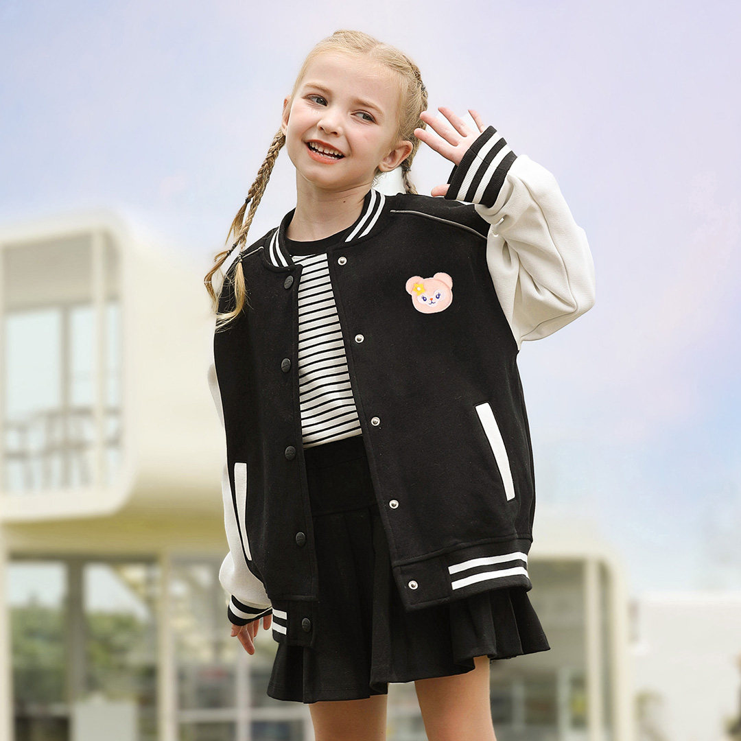 童装男女童春装外套2025新款时尚洋气简约拼接棒球服短款夹克上衣