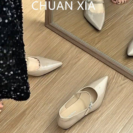 羊皮版!通勤风软底尖头单鞋女一字带真皮玛丽珍鞋内增高浅口瓢鞋