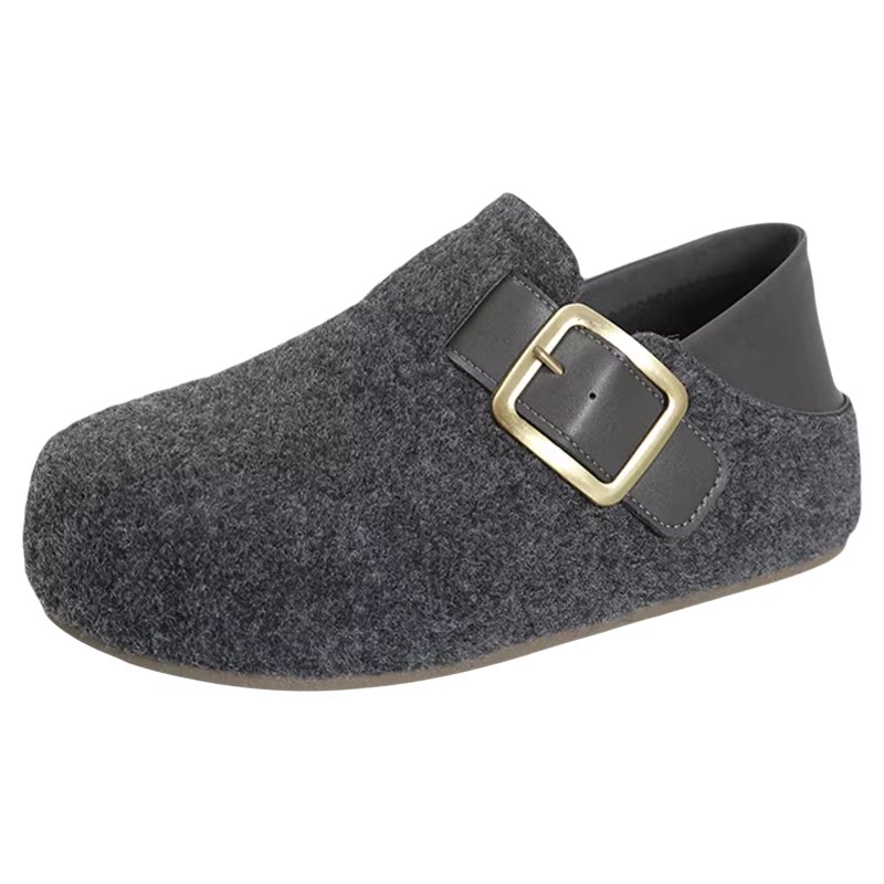 两穿单鞋女2026新款春秋乐福一脚蹬内增高5cm厚底毛呢灰色勃肯鞋
