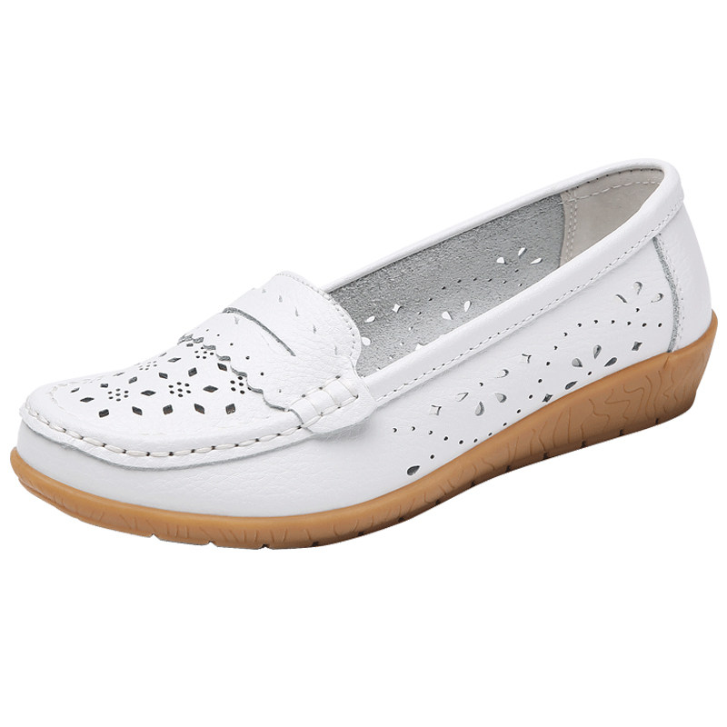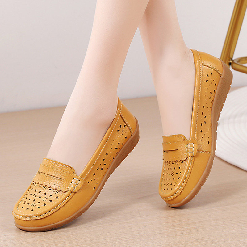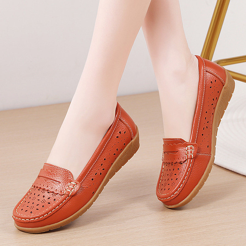 舒适真皮豆豆鞋女春夏款2026年新款透气镂空软底软面休闲妈妈鞋子