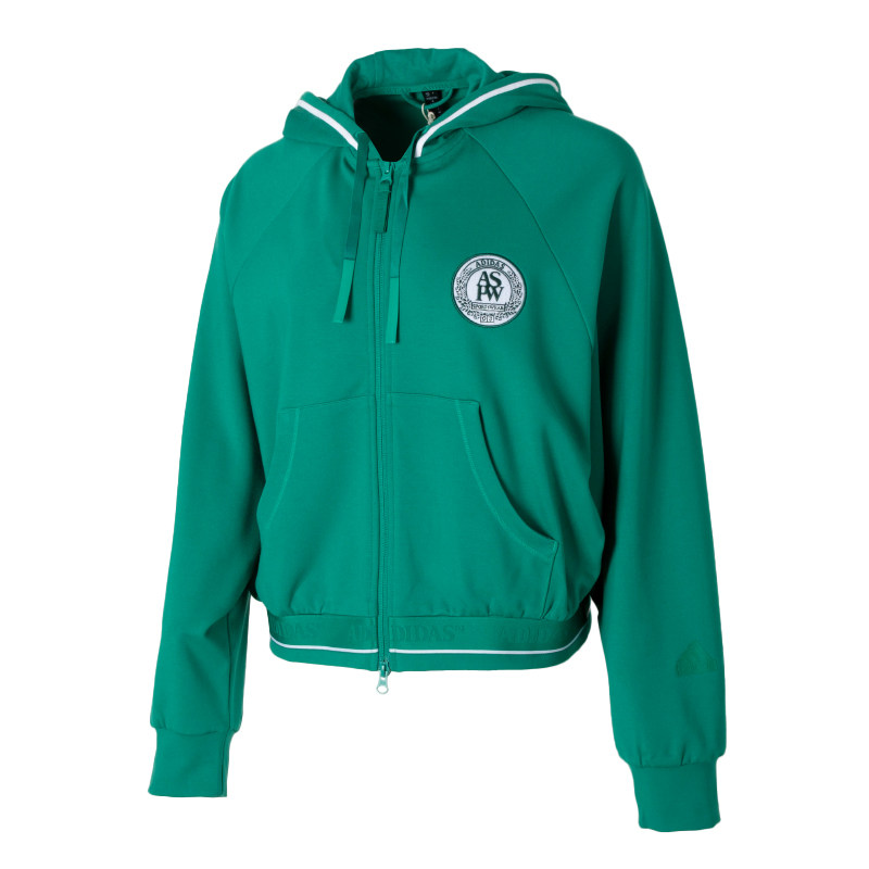 Adidas阿迪达斯外套女春季新款休闲运动服绿色宽松连帽夹克JE3604