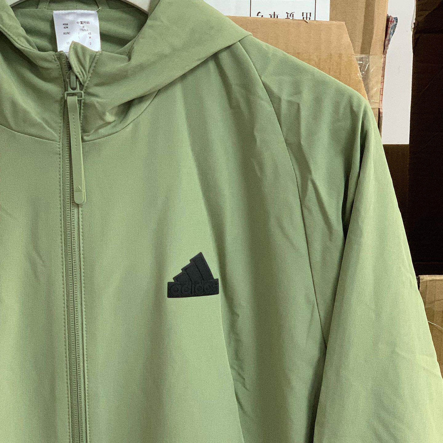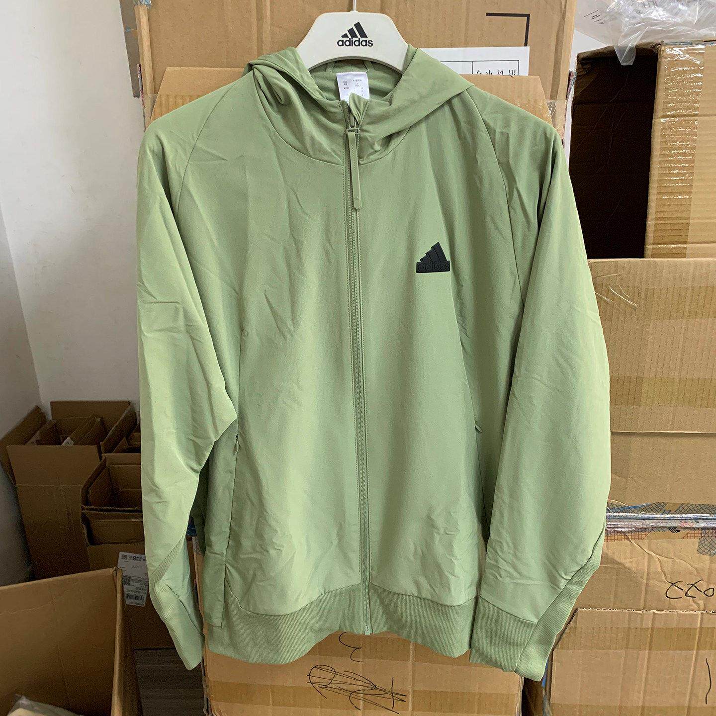 Adidas外套男春季新款针织连帽宽松篮球运动夹克棒球服绿色上衣