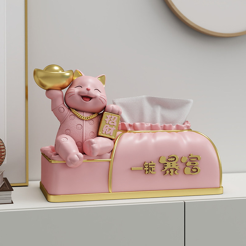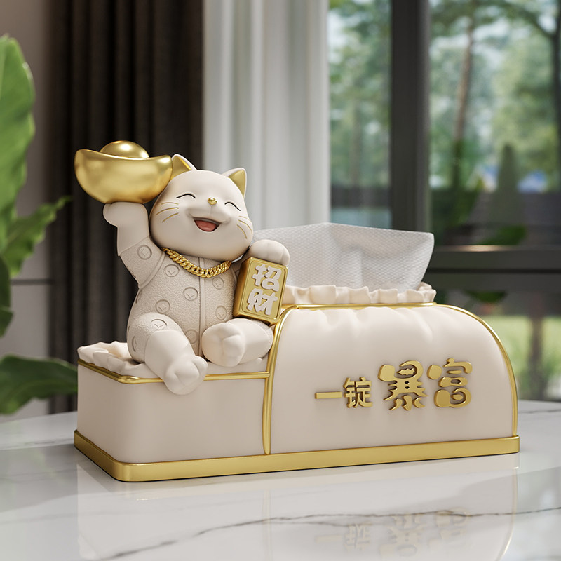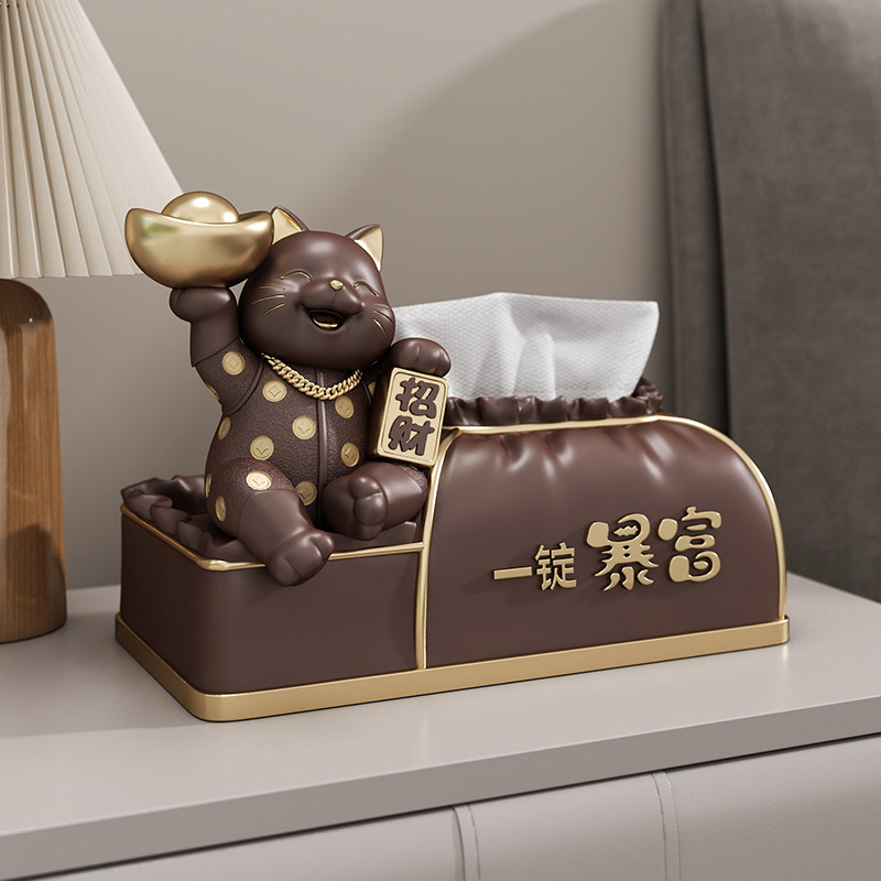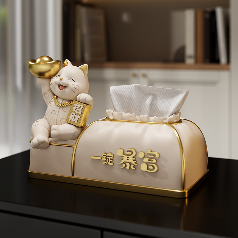 元宝招财猫纸巾盒创意抽纸盒摆件轻奢高档家用餐桌客厅桌面装饰品