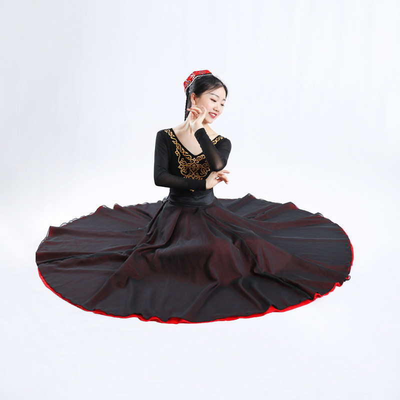 新疆舞蹈练习裙彝族维族舞练功裙藏族演出服装半身裙成人大摆裙女