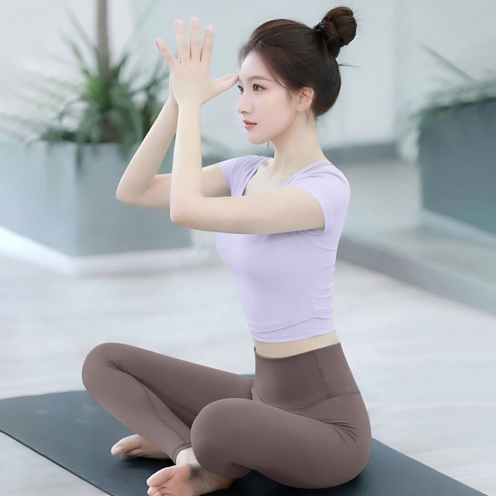 绝美短袖瑜伽服套装女带胸垫美背普拉提训练服短款跑步运动健身衣