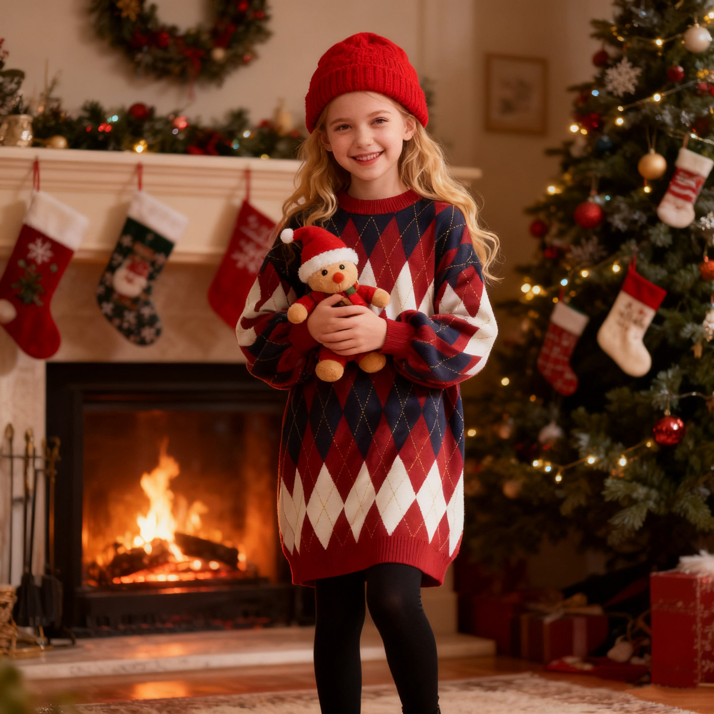女童连衣裙春秋冬新款女孩针织裙大童毛线衫青少年毛衣裙子拜年服