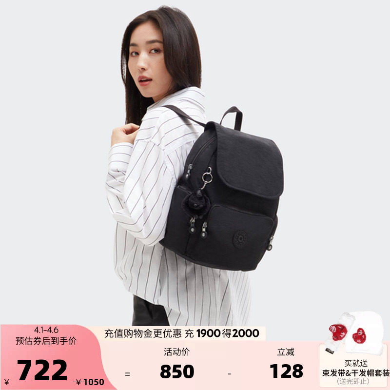 Kipling女款2026春夏新款轻便书包双肩背包猴子包|CITY PACK系列