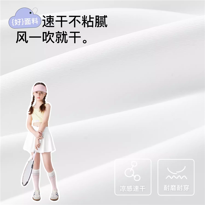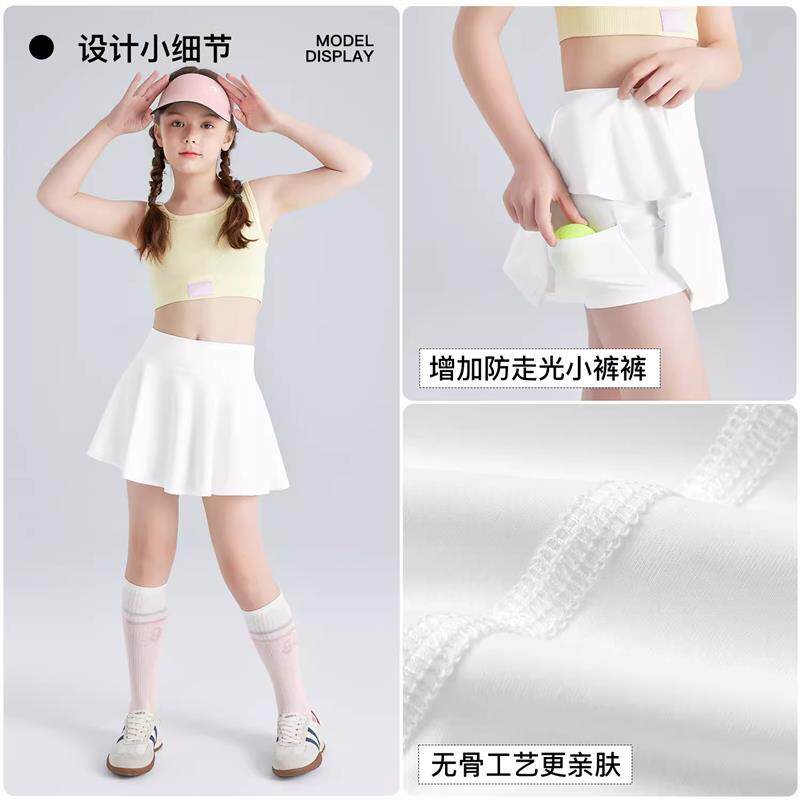 儿童网球裙女童口袋半身裙春夏速干裙裤白色百褶裙防走光运动短裙