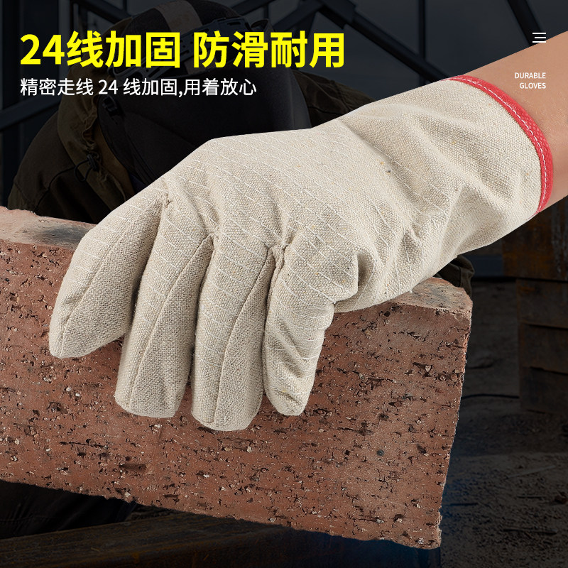 帆布手套劳保耐磨工作双层全衬加厚耐用机械工地焊工24线全衬防护