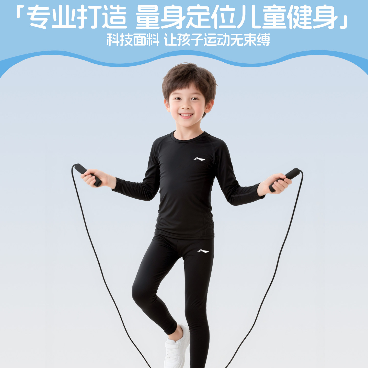 李宁儿童健身衣训练服男童紧身衣运动套装篮球打底速干衣滑雪体能