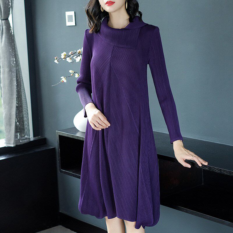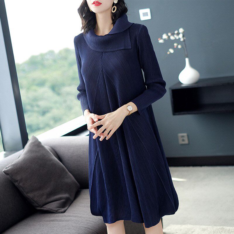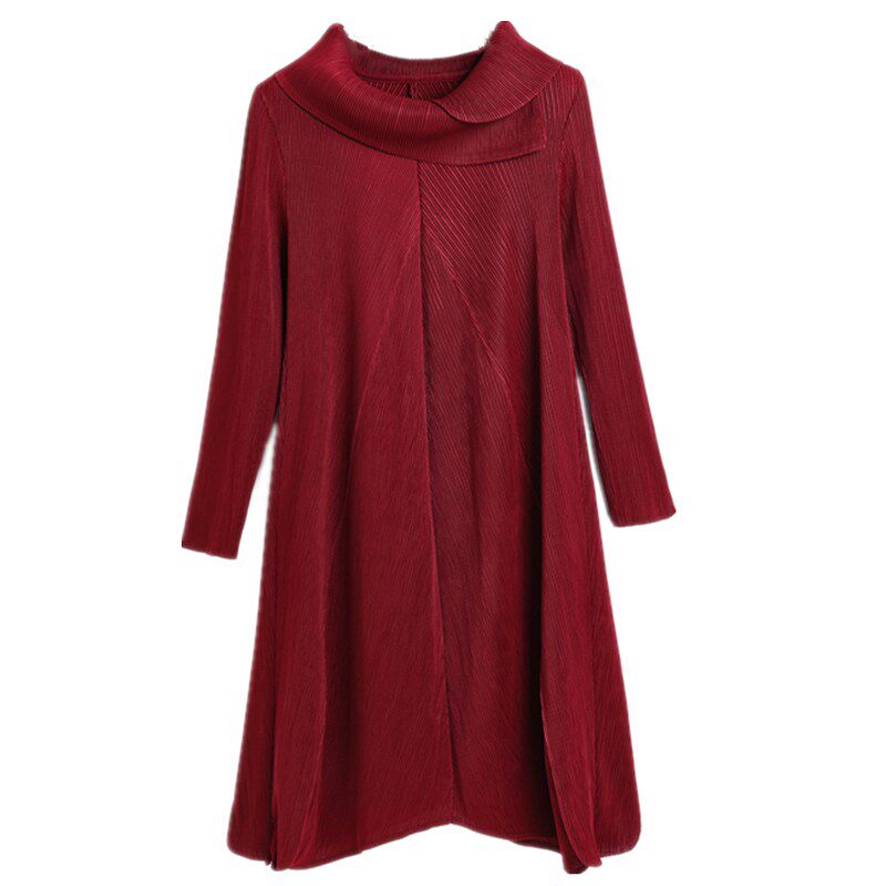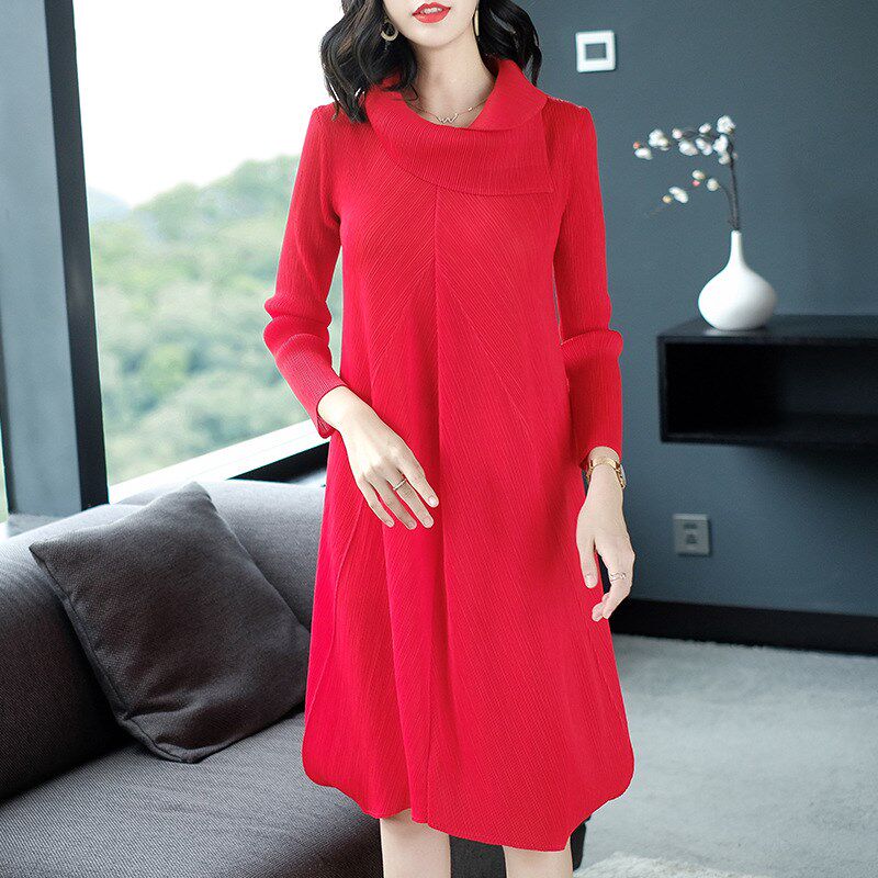 秋季新款褶皱堆堆领连衣裙宽松胖M200斤长袖本命年红色大码A字