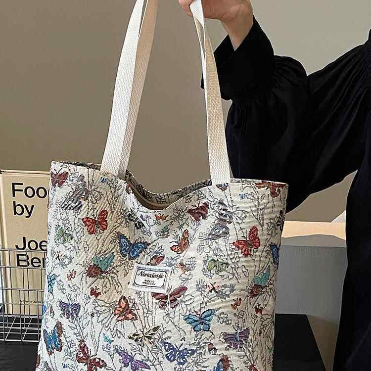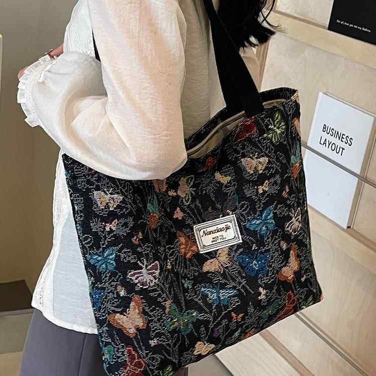 大容量蝴蝶帆布包2026新款通勤上课托特包女ins黑色气质风单肩包