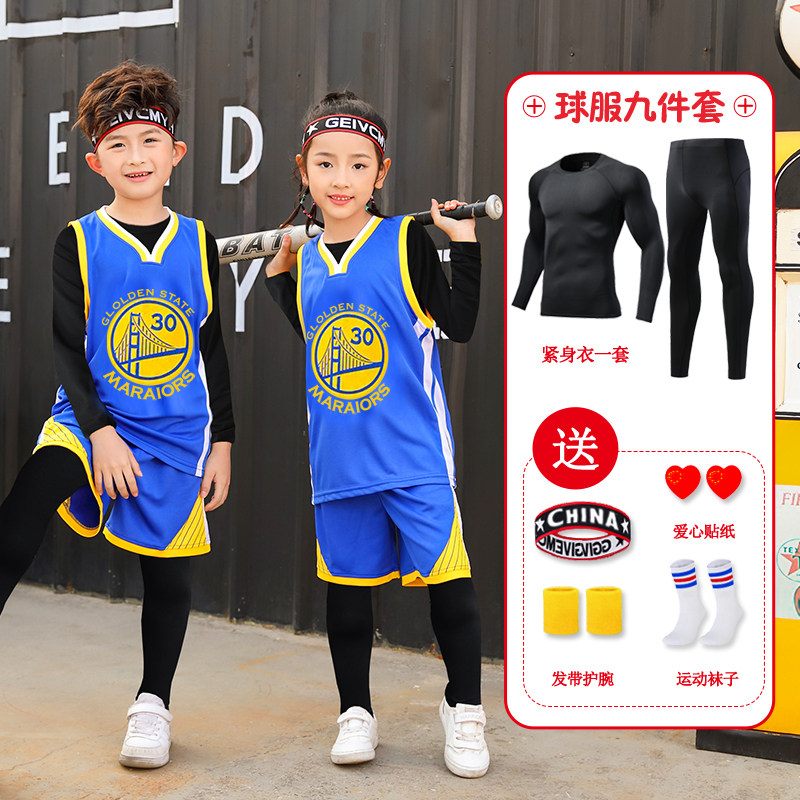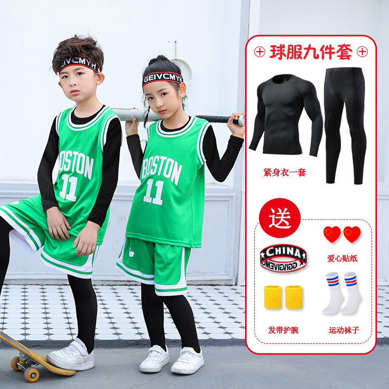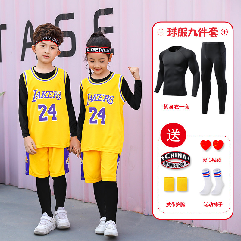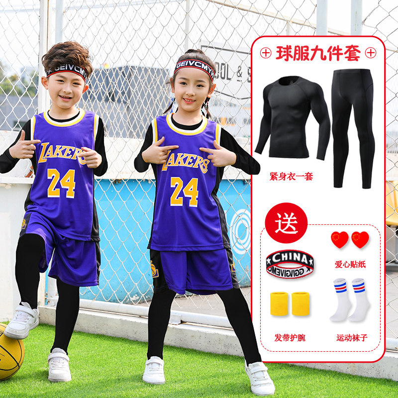 儿童篮球服套装男童秋冬内搭四件套运动训练服女孩科比球衣定制