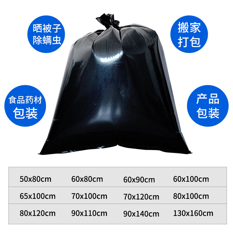 大号加厚黑色塑料袋晒被子除螨虫黑袋子pe平口胶袋搬家收纳打包袋