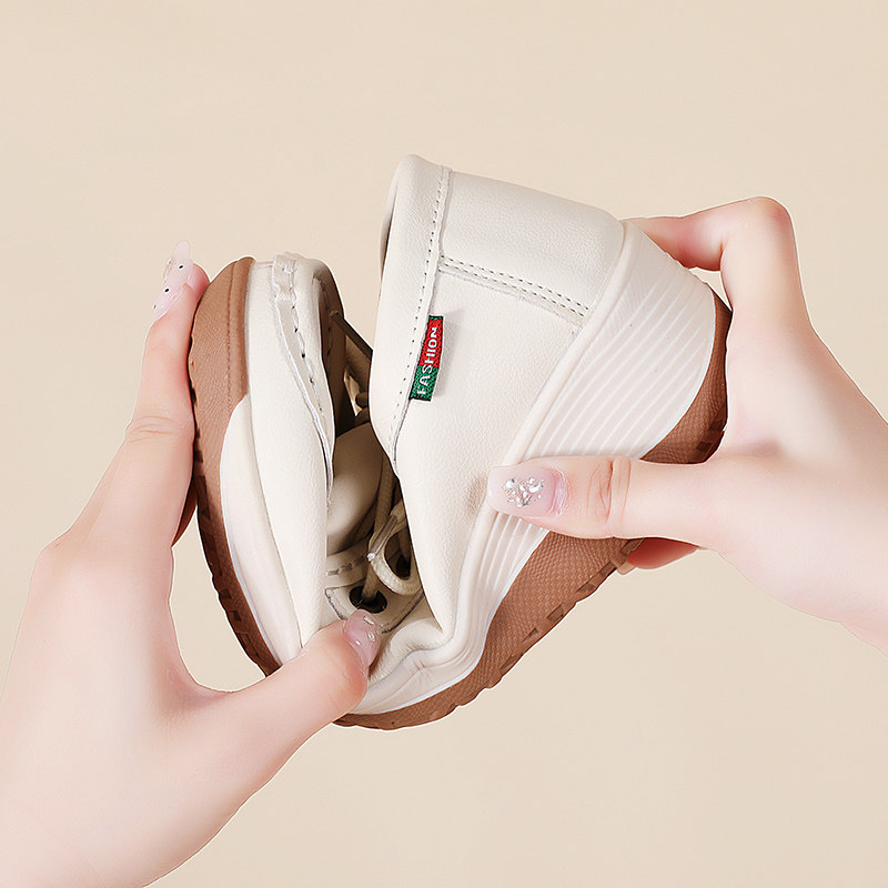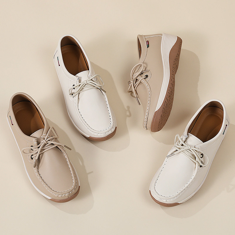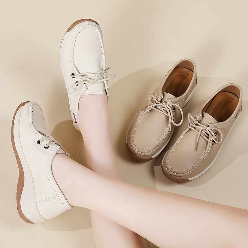 真皮女鞋软底妈妈鞋防滑透气不累脚中老年增高轻便简约女单鞋系带