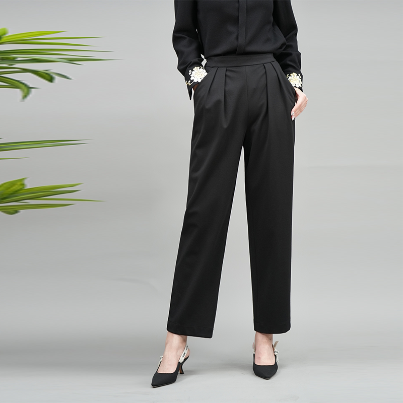 浒城古娘春季新款女装弹力优雅气质时尚百搭直筒长裤子女款春秋