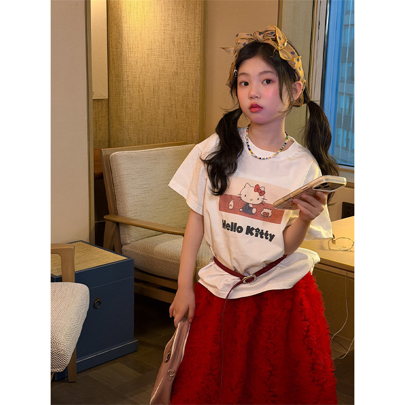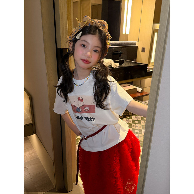 女童韩版卡通印花短袖T恤2026春装新款时髦儿童圆领百搭上衣打底