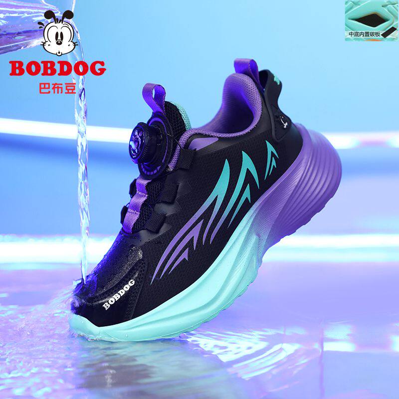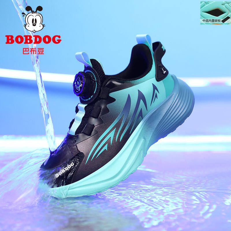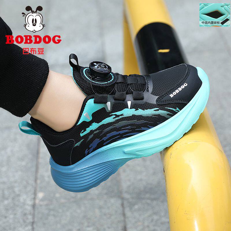 巴布豆童鞋男童运动鞋春秋季网面透气轻便男孩皮面碳板儿童跑步鞋
