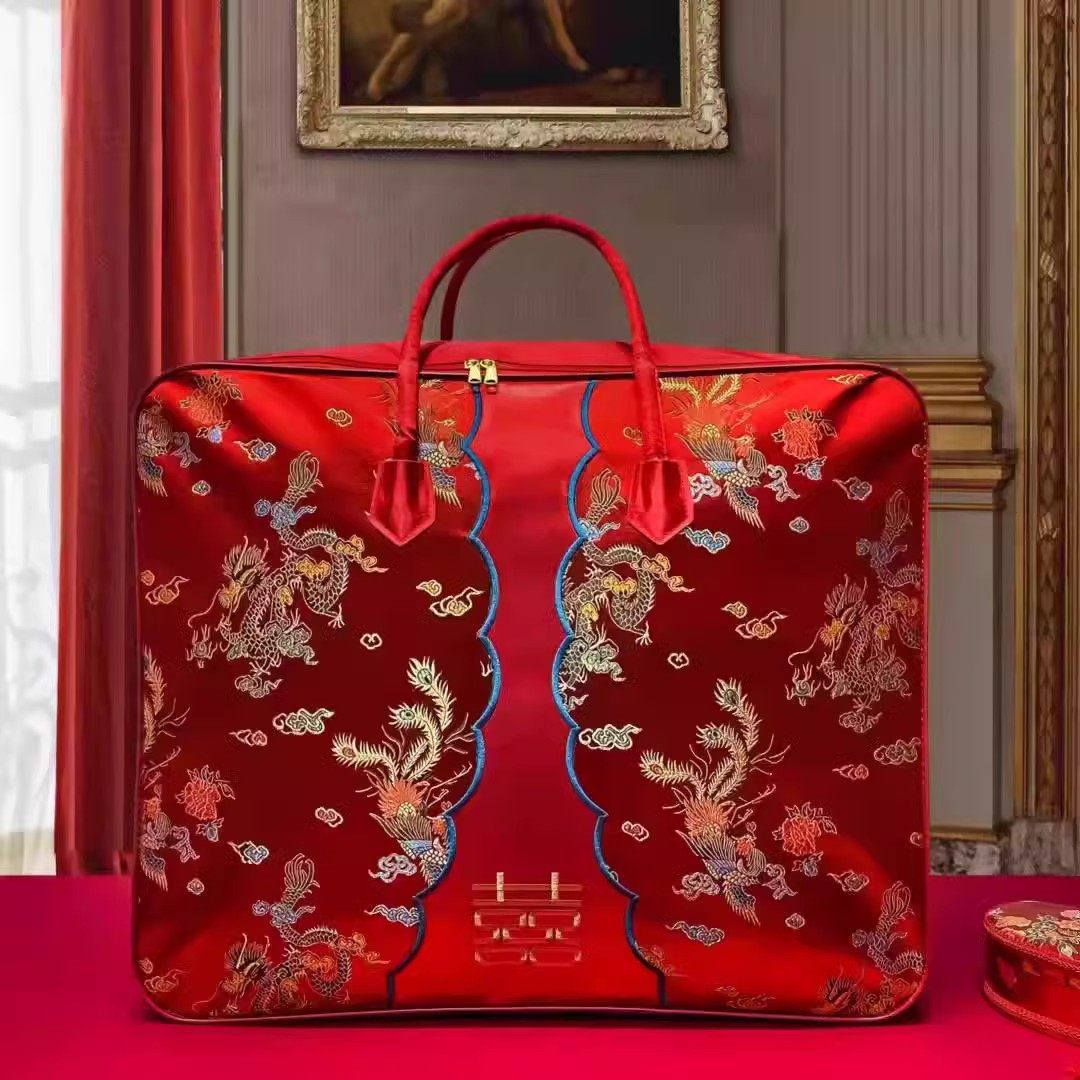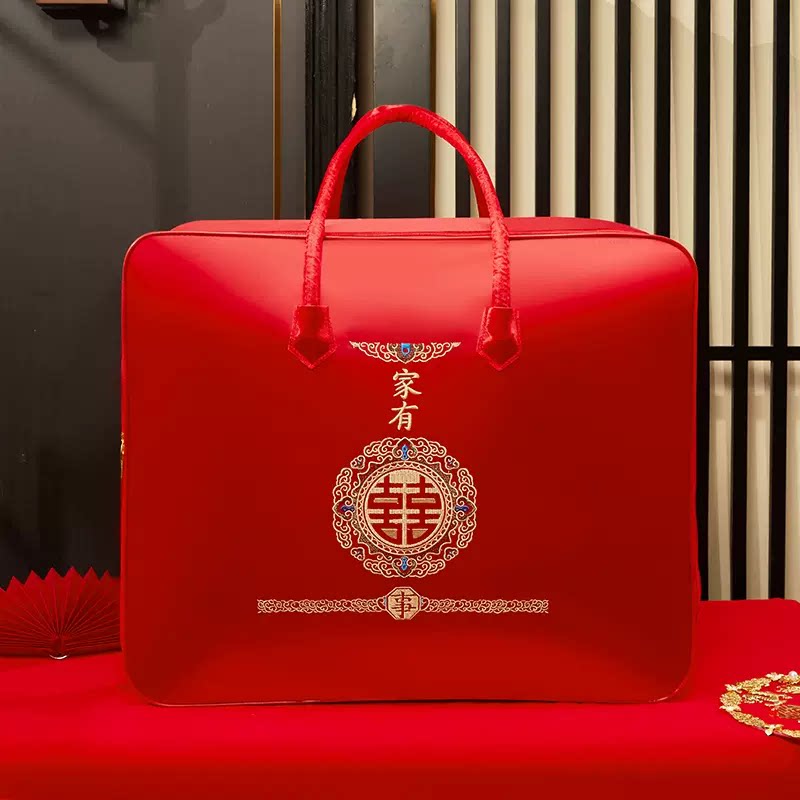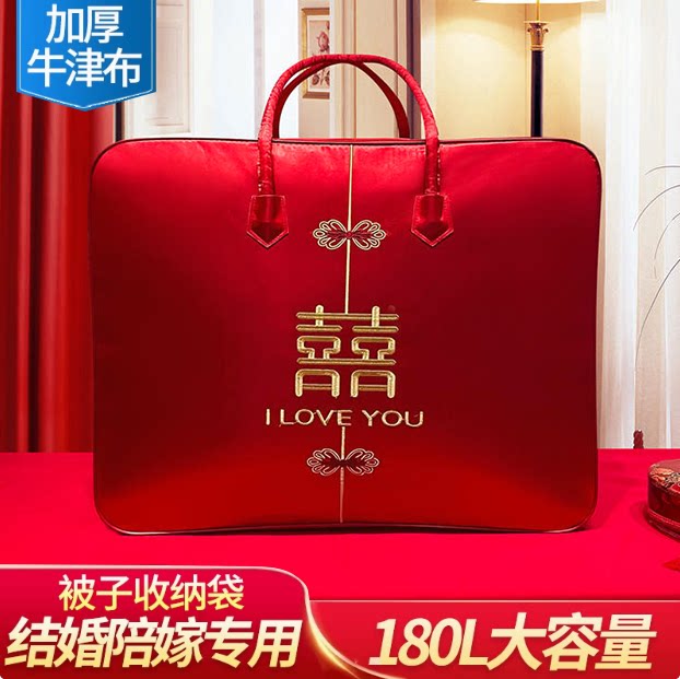 结婚陪嫁被子收纳袋棉被喜被收纳袋婚庆四件套包装袋大红色手提袋