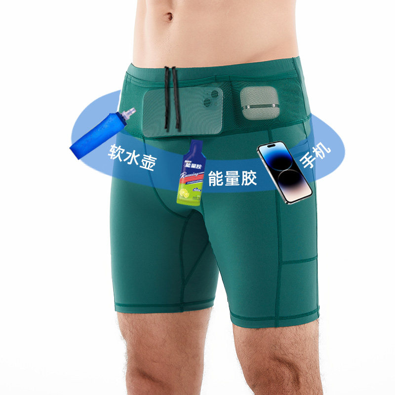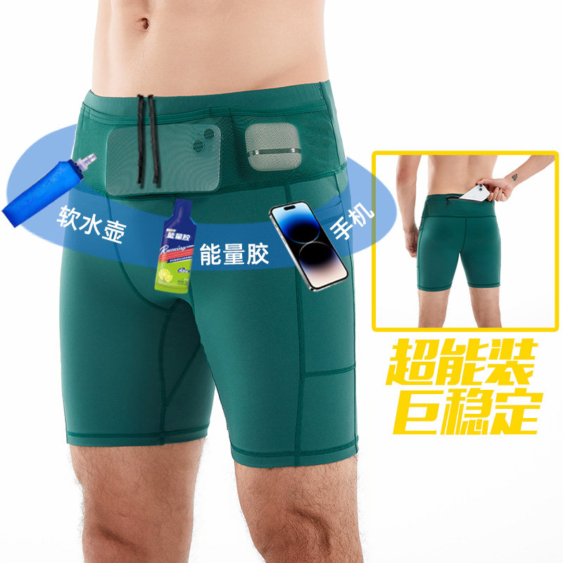 专业跑步四五分紧身压缩袋鼠裤男马拉松田径训练速干运动健身短裤