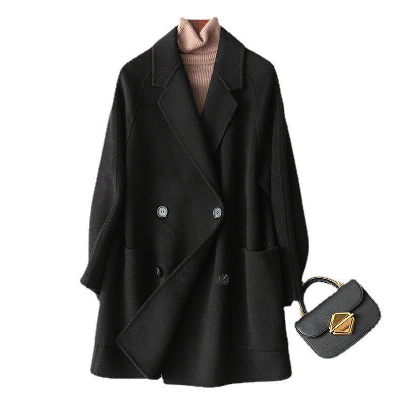 2025秋冬新款双面羊绒大衣短款宽松年轻纯手工羊毛呢外套薄款