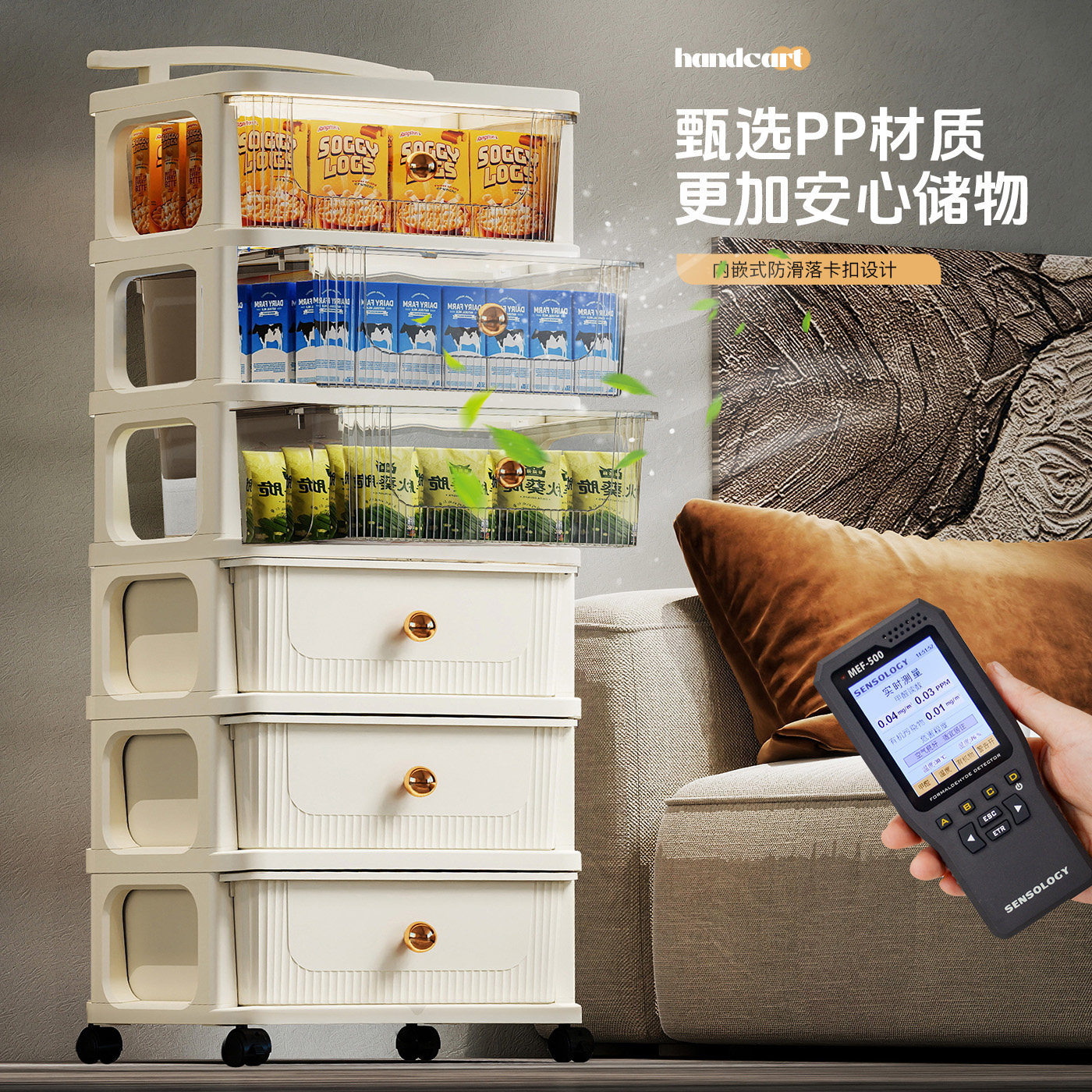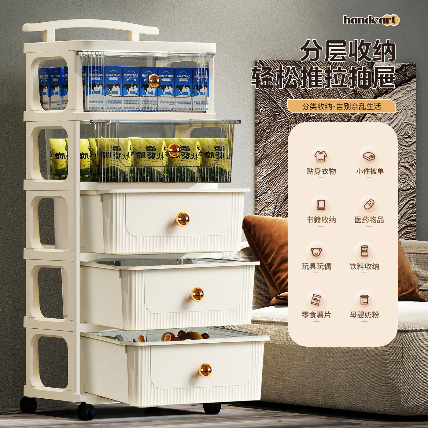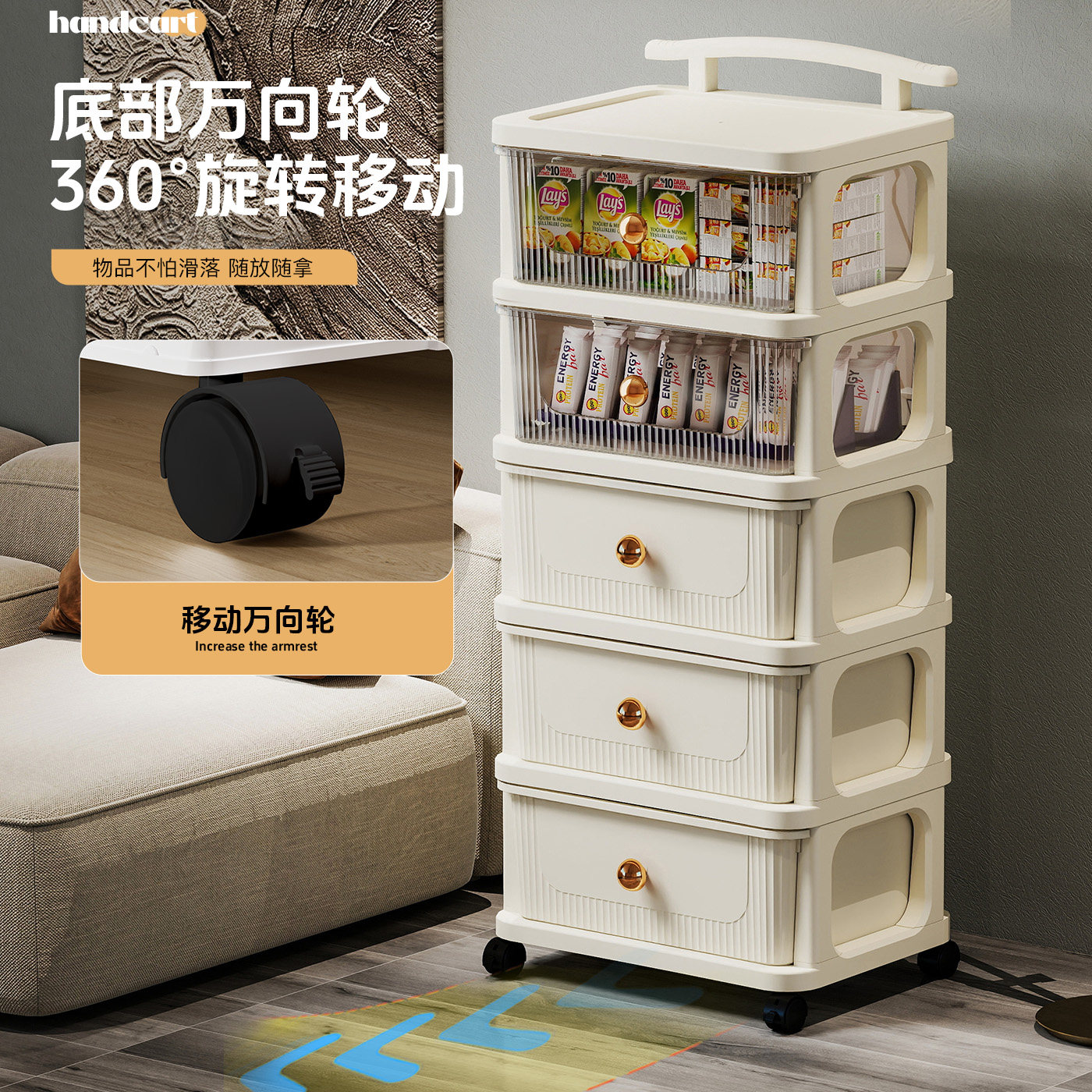 零食置物架落地可移动小推车家用抽屉式收纳柜多层客厅玩具储物柜