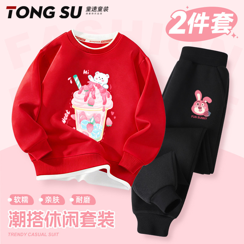 女童春秋款套装2026新款时髦6-10岁女孩洋气假两件一整套儿童春装