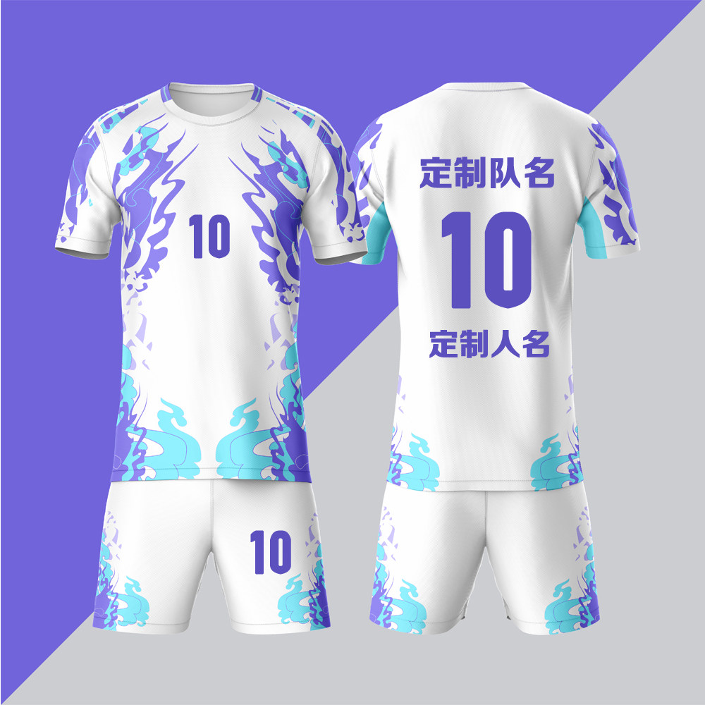 全身数码定制印刷成人儿童足球服套装球衣比赛训练队服LBZ019蓝色