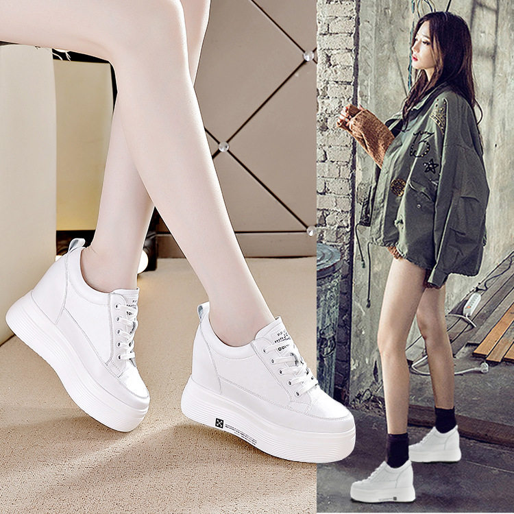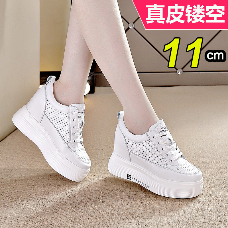 内增高小白鞋女真皮春秋季韩版女鞋10cm透气休闲厚底松糕高跟单鞋