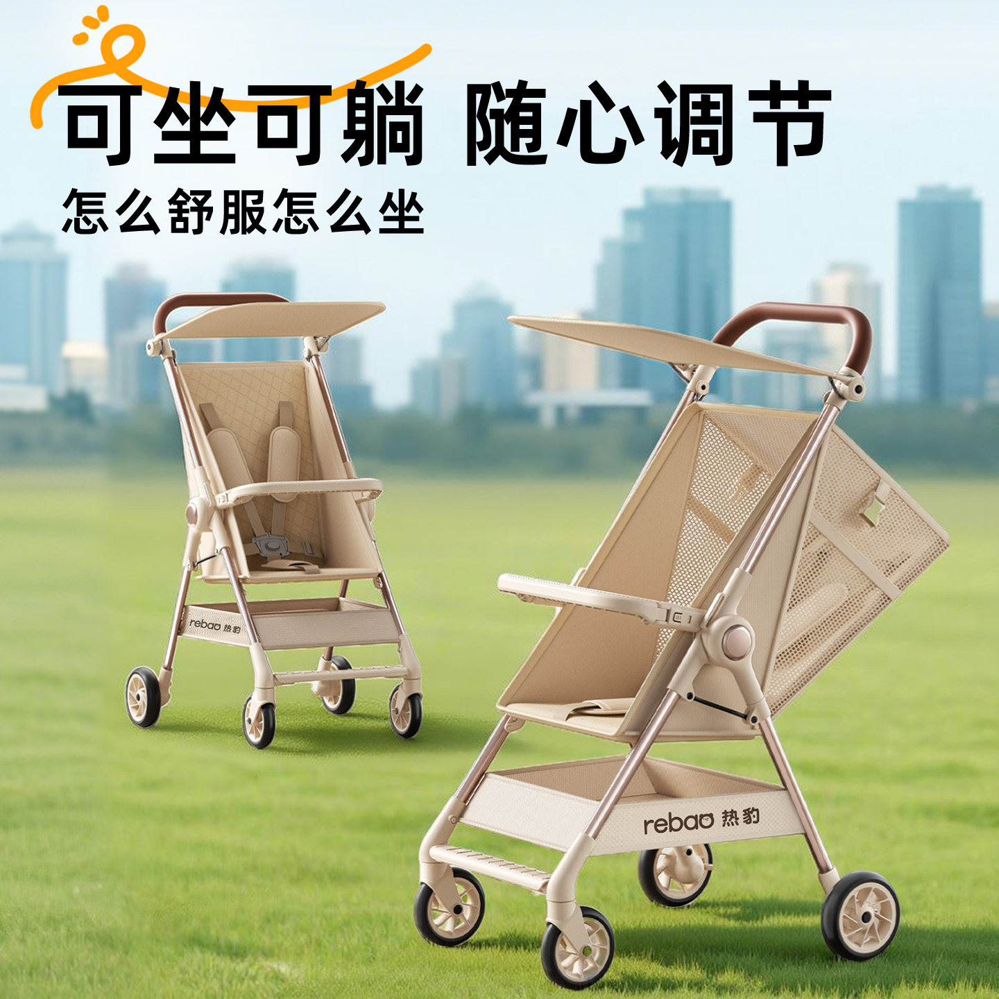 热豹T1折叠婴儿推车遛娃神器可坐可躺一键收车六个月以上轻便小巧