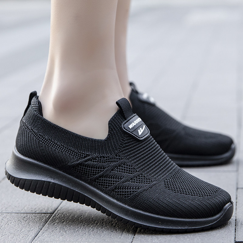 回力女鞋夏季透气一脚蹬休闲单鞋软底防滑黑色上班鞋子老北京布鞋