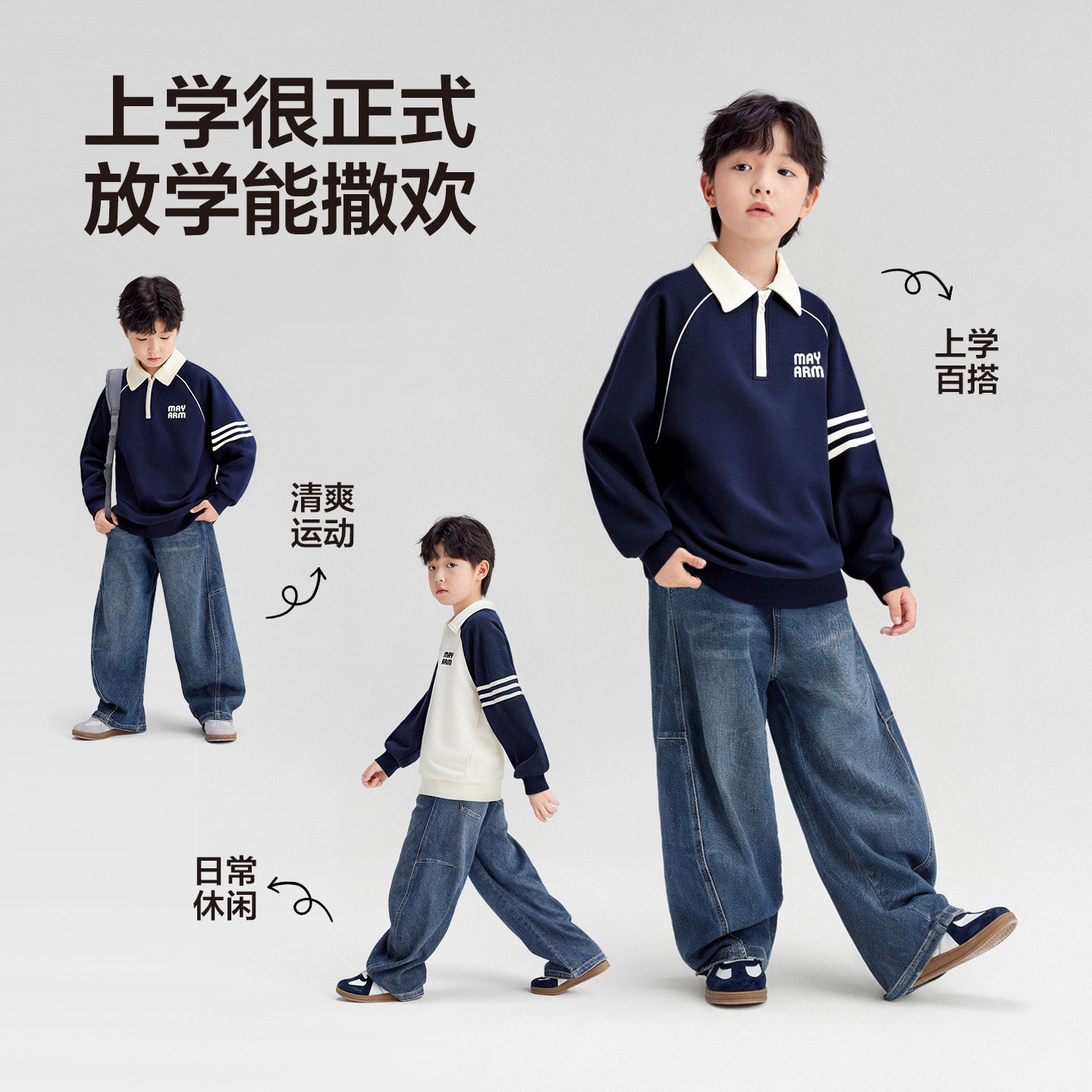 左西童装男童长袖t恤学院风POLO衫儿童春装2026新款男孩大童卫衣