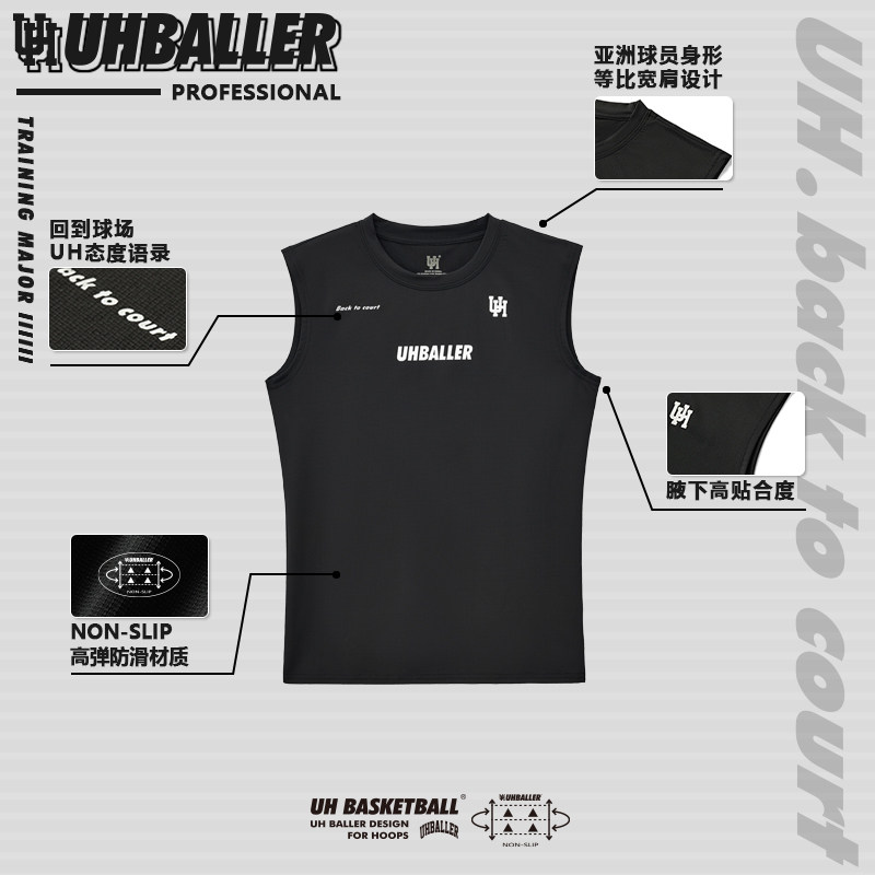UH紧身衣男篮球训练健身运动背心透气美式宽肩无袖速干衣坎肩吸汗