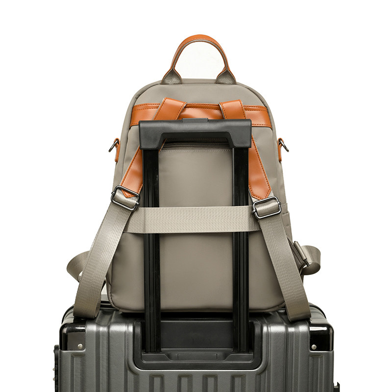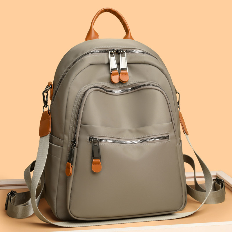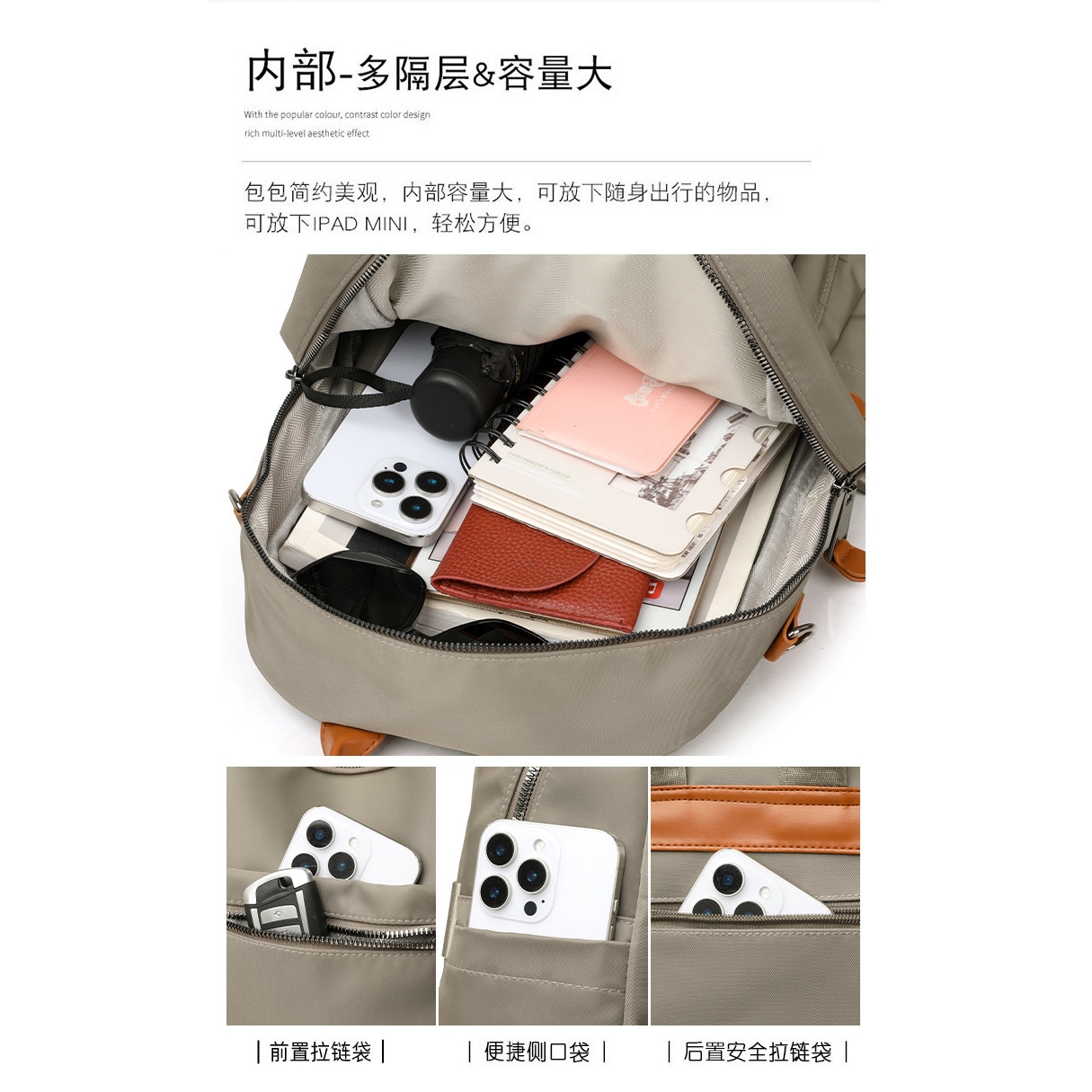 休闲简约风牛津布双肩包女大容量多口袋户外旅行书包黑色通勤背包
