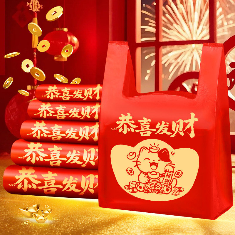 马年红色塑料袋加厚2026新款烫金过年喜庆商场超市礼品手提袋批发