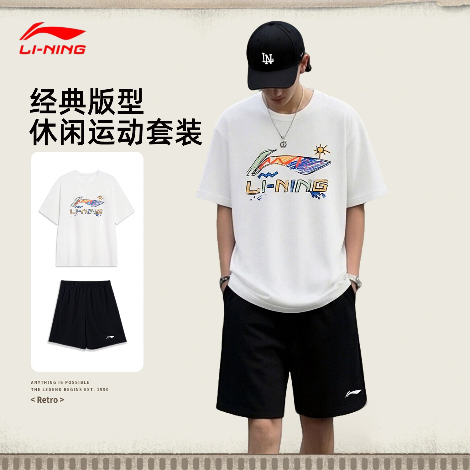 李宁短裤短袖男款2026夏季新款凉感透气宽松舒适青少年男运动套装