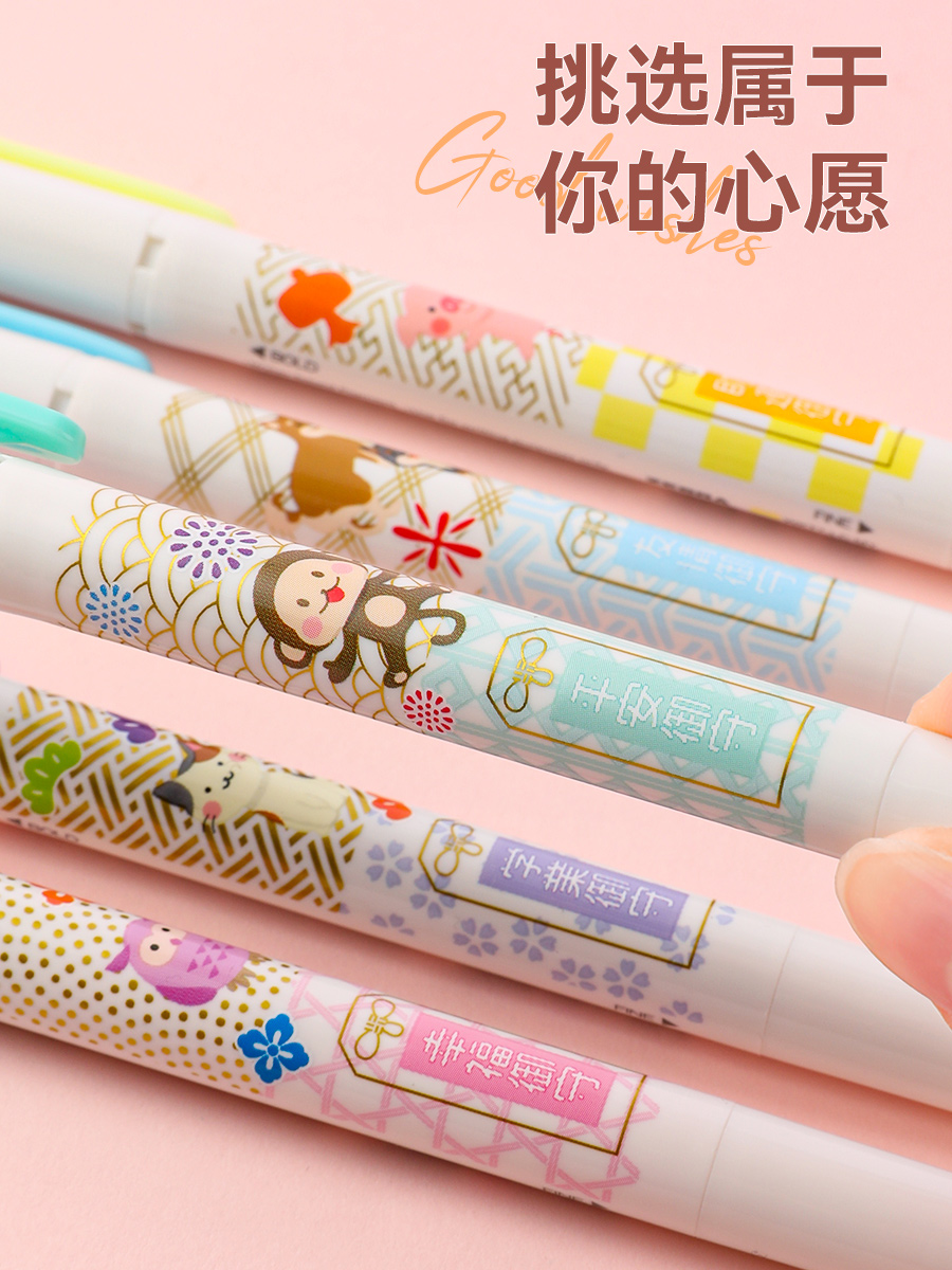 【第一卫】日本ZEBRA斑马荧光笔心愿限定WKT7套装学生手帐标记双头mildliner淡色浅色斜头荧光色笔黄色
