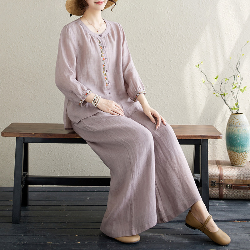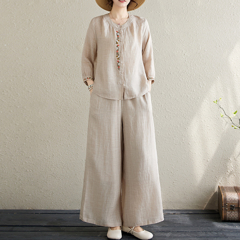 中年妈妈夏装棉麻亚麻套装女夏季2026新款国风女装高端洋气两件套