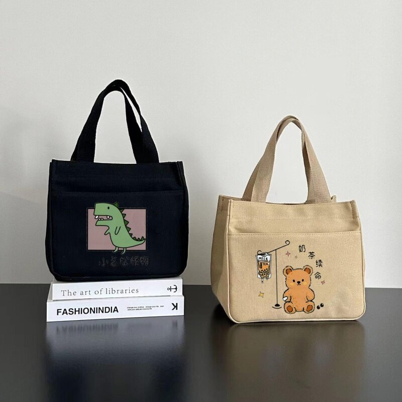 2025新款出门上班族杂物小拎包拉链洋气便当盒饭手提袋帆布女通勤