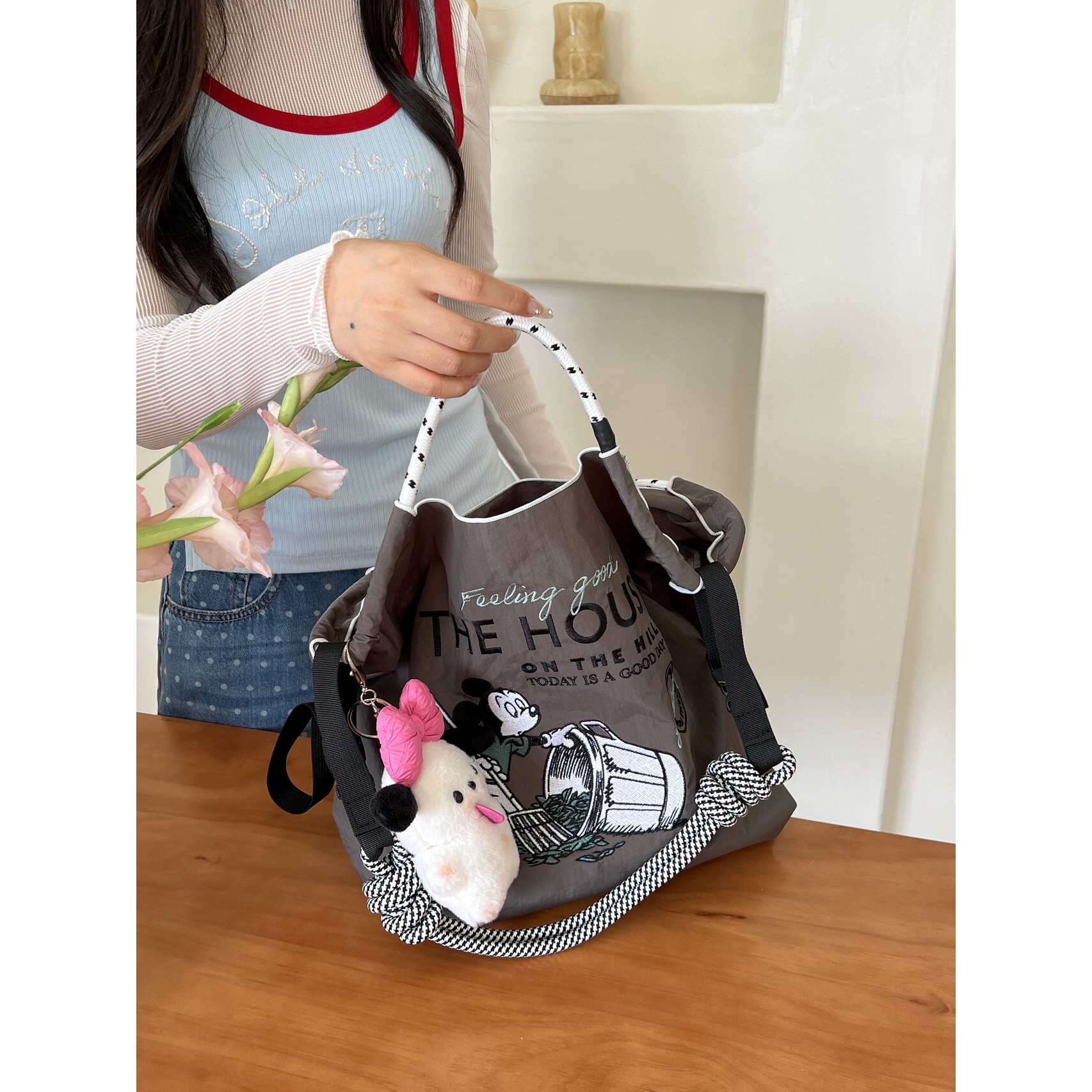 Disney迪士尼官方正品刺绣米奇地球日环保袋帆布包女2024夏天布包