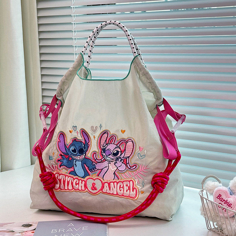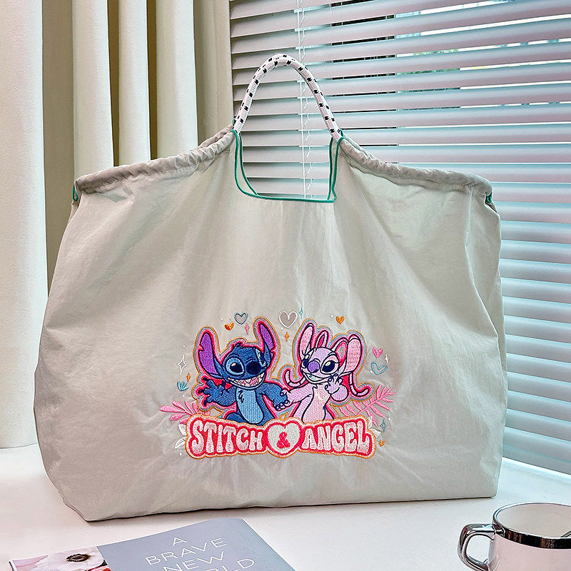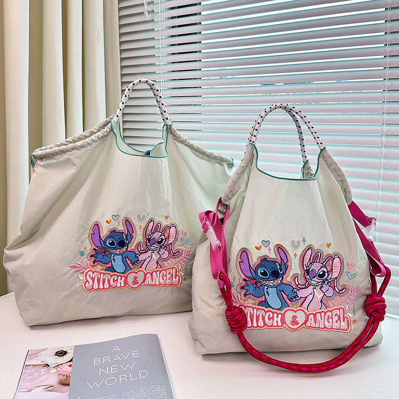 Disney迪士尼官方正品刺绣史迪仔和安琪环保购物袋帆布手提通勤包