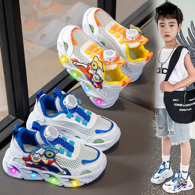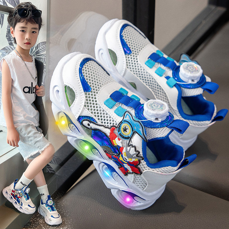 网面儿童鞋子男童带灯春夏2026新款透气运动鞋亮灯发光老爹鞋男孩